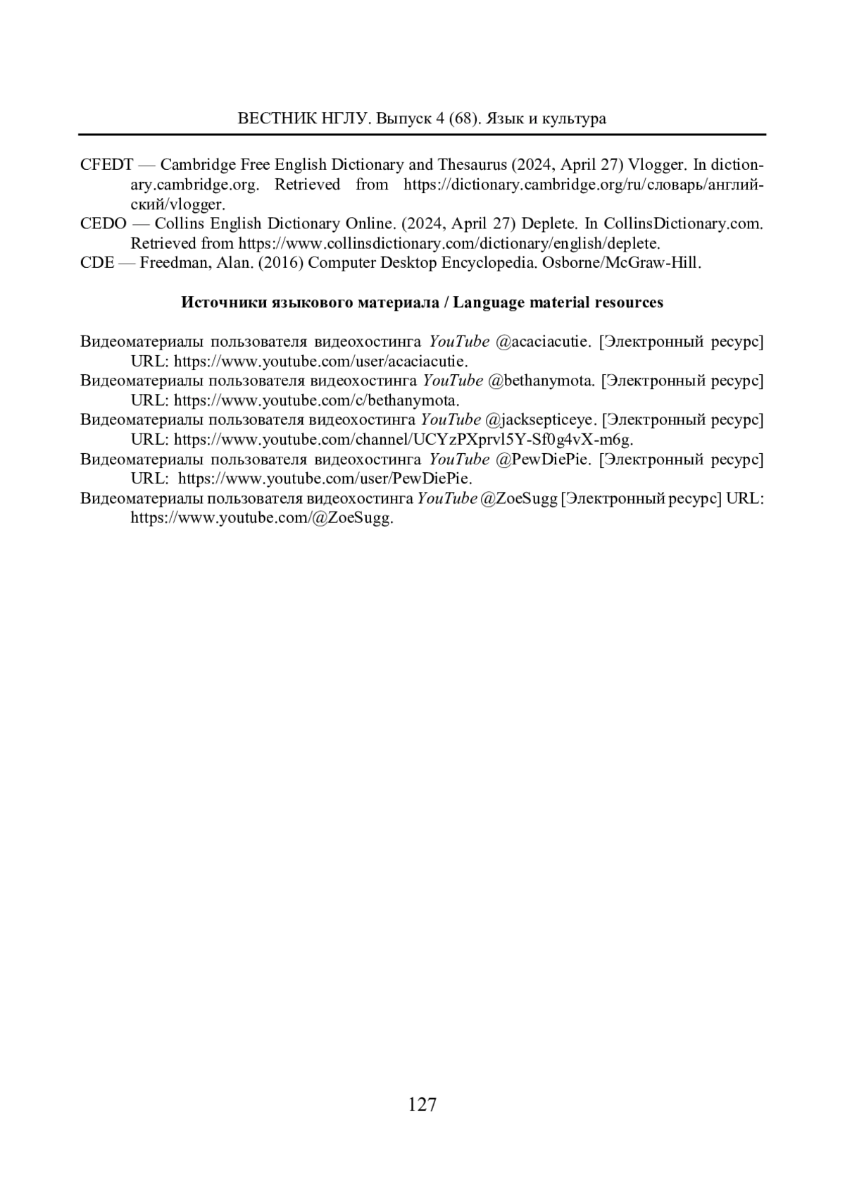 31. CFEDT - Cambridge Free English Dictionary and Thesaurus (2024, April 27) Vlogger. In dictionary.cambridge.org. Retrieved from https://dictionary.cambridge.org/ru/словарь/английский/vlogger.