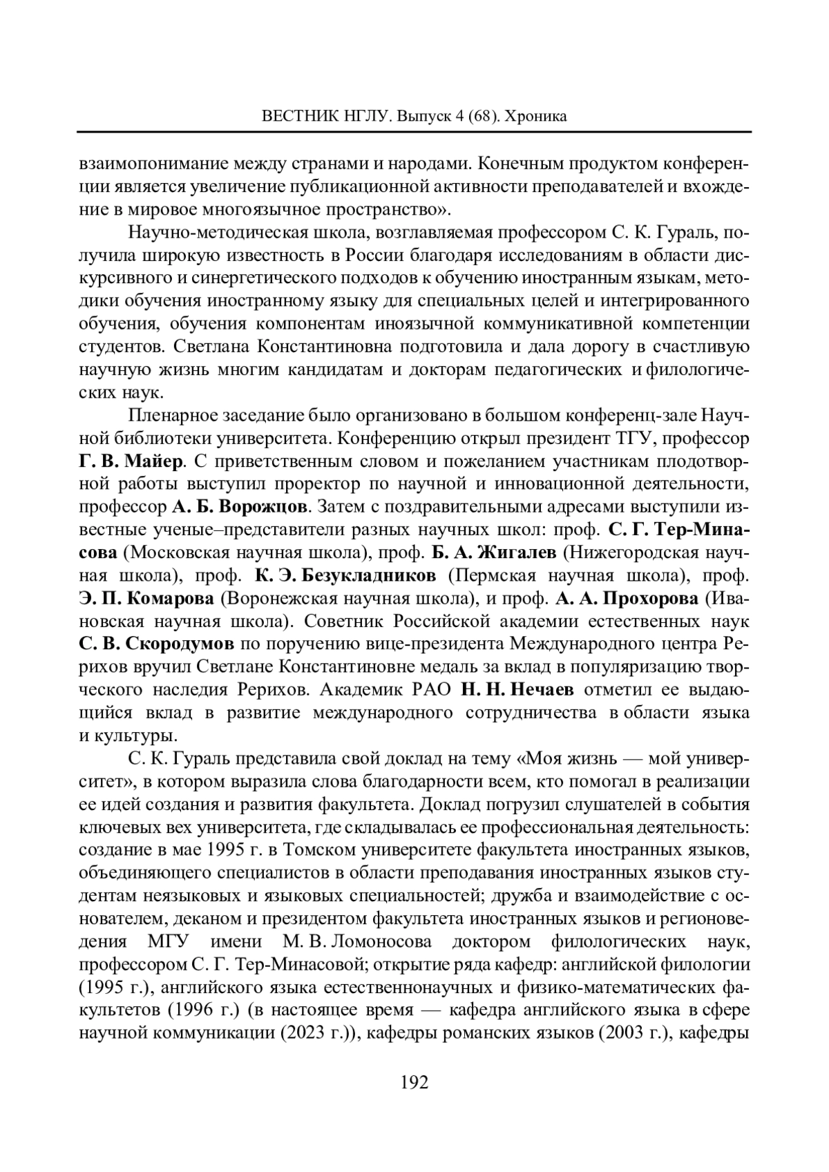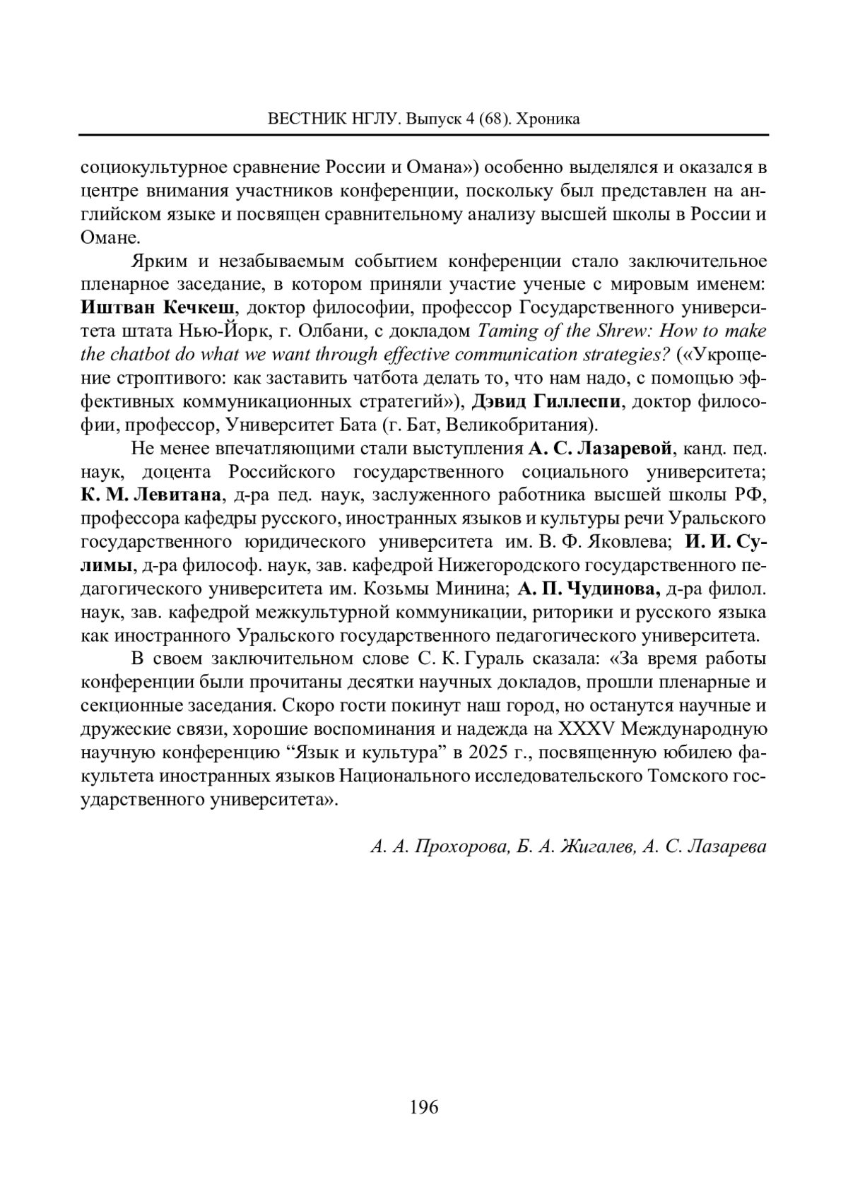 С 14 по 17 октября 2024 года один из старейших городов Сибири Томск принимал участников XXXIV Международной научной конференции «Язык и культура», организованной при поддержке ректора Национального исследовательского Томского государственного университета (ТГУ), доктора психол. наук, профессора, действительного члена РАО, Эдуарда Владимировича Галажинского.
