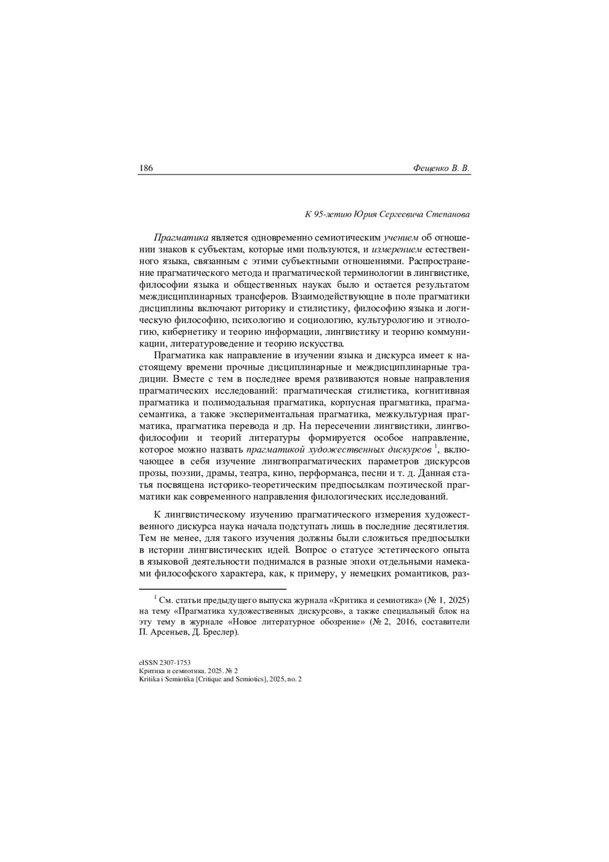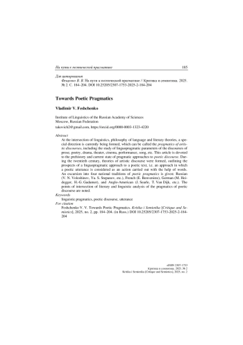 17. Фещенко В. В. Из истории когнитивно-лингвистических подходов в отечественной и зарубежной поэтике // Критика и семиотика. 2019. № 2. С. 95-112.