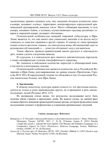 1. Витарана А. П. Русский и сингальский языки в сопоставительном аспекте // Язык. Общество. Медицина. Гродно: ГрГМУ, 2021. С. 36-38. EDN: AOAVXT