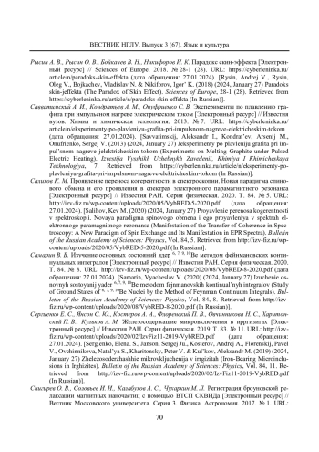 78. Сергиенко Е. С., Янсон С. Ю., Костеров А. А., Флоренский П. В., Овчинникова Н. С., Харитонский П. В., Кульков А. М. Железосодержащие микровключения в ирргизитах [Электронный ресурс] // Известия РАН. Серия физическая. 2019. Т. 83. № 11. URL: http://izv-fiz.ru/wp-content/uploads/2020/02/IzvFiz11-2019-VybRED.pdf (дата обращения: 27.01.2024). EDN: JTGMNG