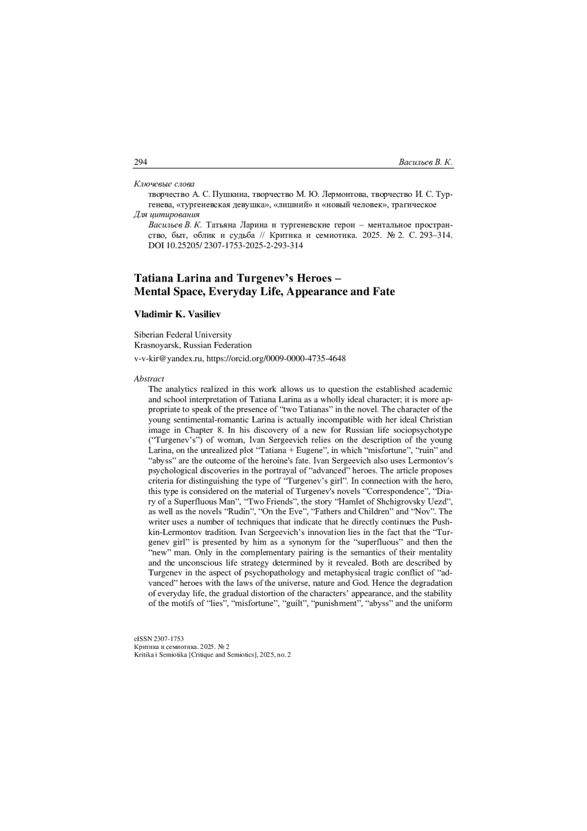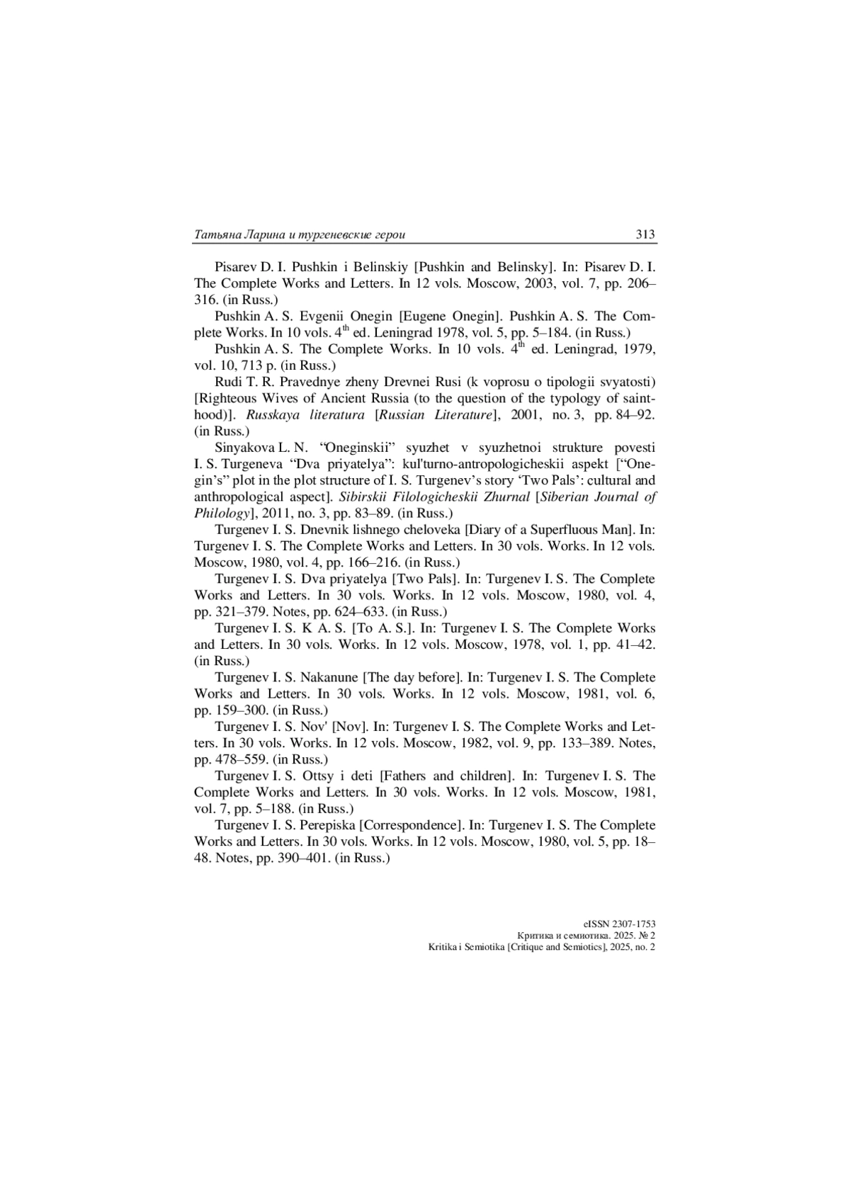 14. Синякова Л. Н. “Онегинский” сюжет в сюжетной структуре повести И. С. Тургенева “Два приятеля”: культурно-антропологический аспект // Сибирский филологический журнал. 2011. № 3. С. 83-89.