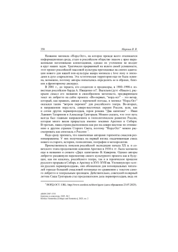 7. Теребихин Н. М. Северо-Восточный текст русской геоисториософии, геопоэтики и сакральной географии // Вестник Сев. (Арктич.) федер. ун-та. Серия: Гуманитарные и социальные науки. 2023. T. 23, № 4. С. 104-113. DOI: 10.37482/2687-1505-V274 8. Ядринцев Н. М. Сибирь как колония. Ее нужды и потребности. Ее прошлое и будущее. СПб.: Тип. М. М. Стасюлевича, 1882. 471 с.