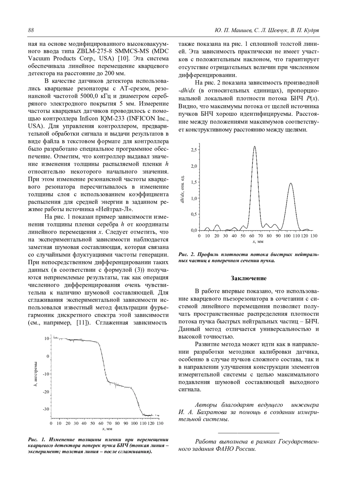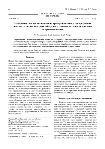 Маишев Ю. П., Шевчук С. Л., Кудря В. П. Экспериментальное исследование пространственного распределения плотности потока быстрых нейтральных частиц методом кварцевого микровзвешивания 86