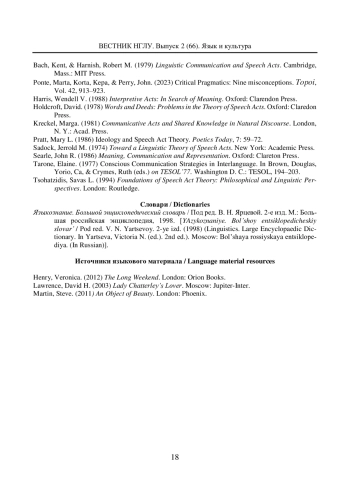 15. Новое в зарубежной лингвистике. Выпуск 17: Теория речевых актов. М.: Прогресс, 1986.