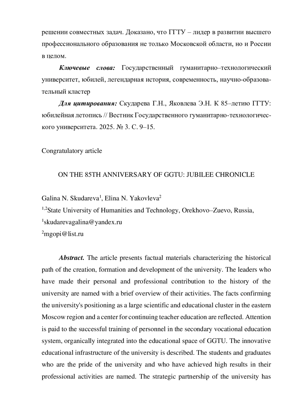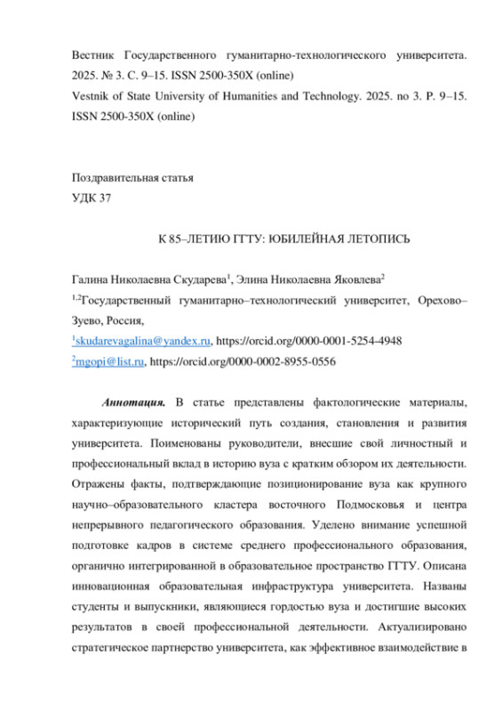 В статье представлены фактологические материалы, характеризующие исторический путь создания, становления и развития университета. Поименованы руководители, внесшие свой личностный и профессиональный вклад в историю вуза с кратким обзором их деятельности. Отражены факты, подтверждающие позиционирование вуза как крупного научно-образовательного кластера восточного Подмосковья и центра непрерывного педагогического образования. Уделено внимание успешной подготовке кадров в системе среднего профессионального образования, органично интегрированной в образовательное пространство ГГТУ. Описана инновационная образовательная инфраструктура университета. Названы студенты и выпускники, являющиеся гордостью вуза и достигшие высоких результатов в своей профессиональной деятельности. Актуализировано стратегическое партнерство университета, как эффективное взаимодействие в решении совместных задач. Доказано, что ГГТУ - лидер в развитии высшего профессионального образования не только Московской области, но и России в целом.
