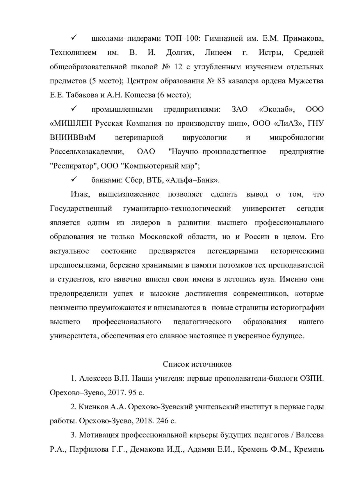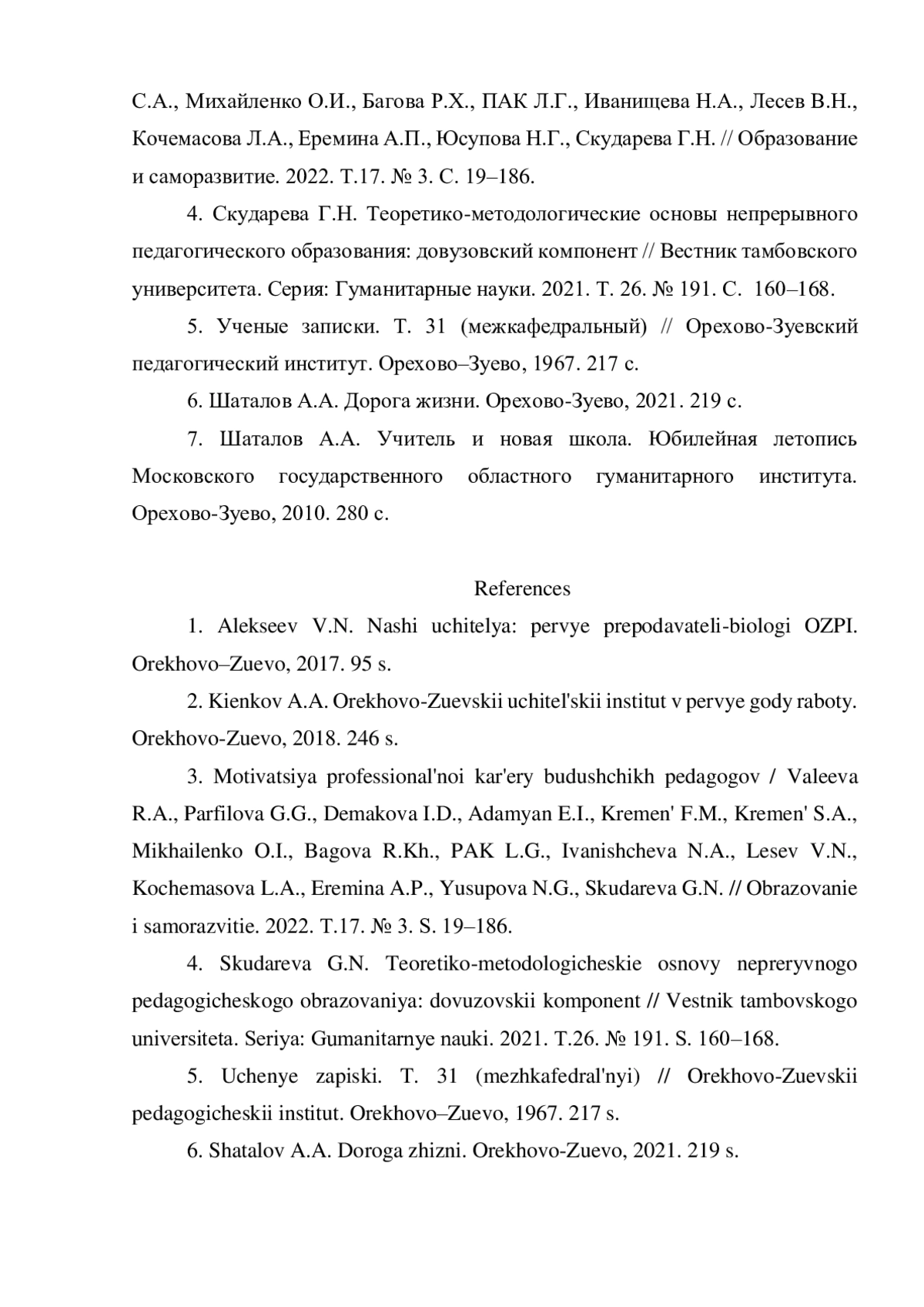 1. Алексеев В.Н. Наши учителя: первые преподаватели-биологи ОЗПИ. Орехово-Зуево, 2017. 95 с.