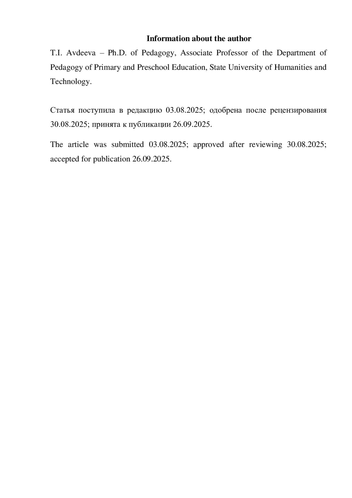 2. Авдеева Т.И. Поликультурное воспитание. Часть 2. Толерантность: учебное пособие. Орехово-Зуево: ГГТУ, 2025. 104 с.