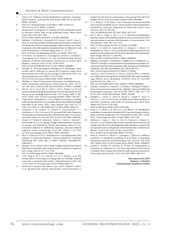23. Bai Y., Xia X., Wang Y., He J., X. Li X. Electroencephalography quadratic phase self-coupling correlates with consciousness states and restoration in patients with disorders of consciousness. Clin Neurophysiol. 2019; 130: 1235-1242. PMID: 31163368. DOI: 10.1016/j.clinph.2019.04.710. PMID: 31163368