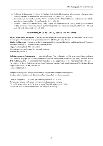 14. Дунаева Е. В., Мамедова Н. М., Сажин В. И. Год после выхода США из ядерной сделки (новые риски для Ирана). Восточная аналитика. 2019;(1):76-90.
