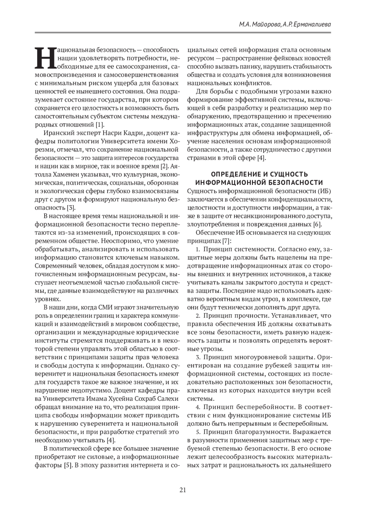 9. Зарипова Г. К., Рамазонов Ж. Ж. Информационная безопасность. Научные исследования.2019;(1):51-54.
