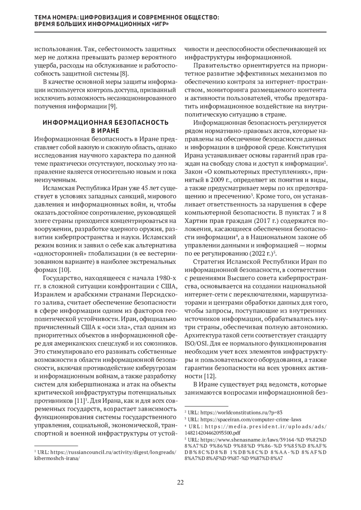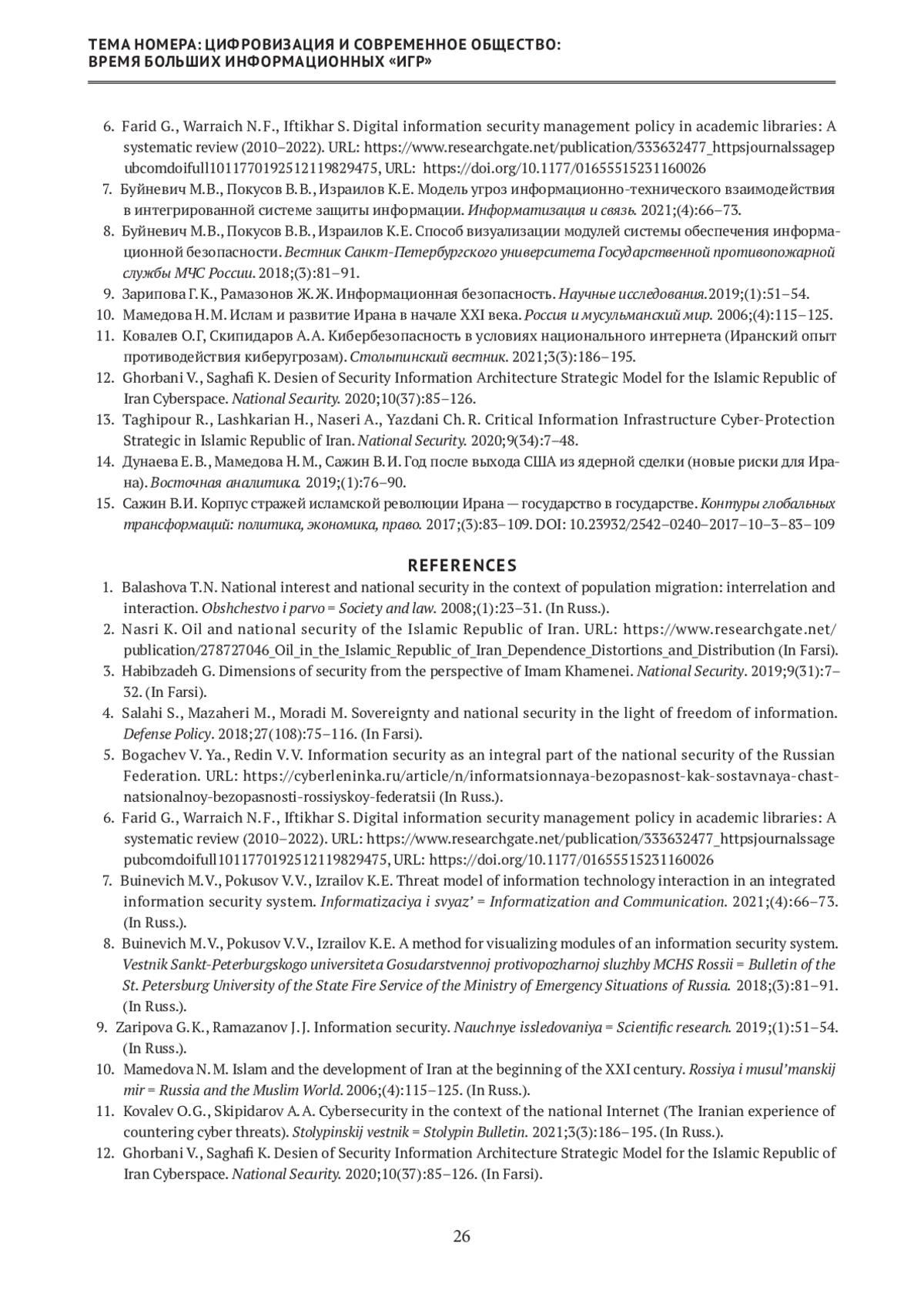 11. Ковалев О.Г, Скипидаров А. А. Кибербезопасность в условиях национального интернета (Иранский опыт противодействия киберугрозам). Столыпинский вестник. 2021;3(3):186-195.