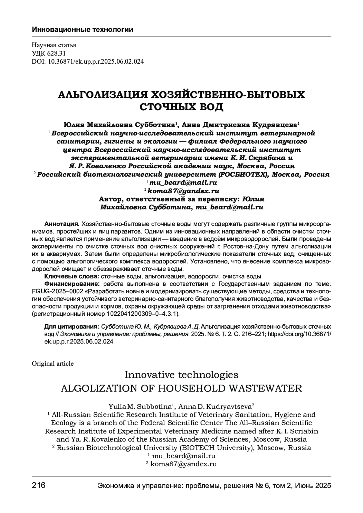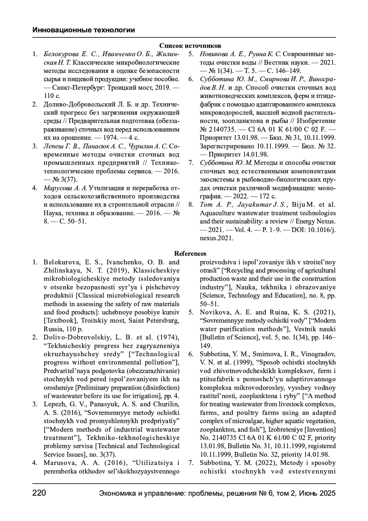 7. Субботина Ю. М. Методы и способы очистки сточных вод естественными компонентами экосистемы в рыбоводно-биологических прудах очистки различной модификации: монография. - 2022. - 172 с.