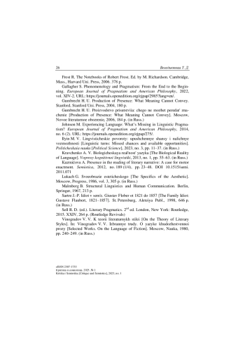 19. Johnson M. Experiencing Language: What’s Missing in Linguistic Pragmatism? // European Journal of Pragmatism and American Philosophy. 2014. No. 6 (2). URL: https://journals.openedition.org/ejpap/275/.