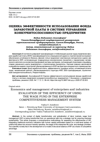В контексте цифровой трансформации и глобализации рынков труда управление фондом заработной платы (ФЗП) трансформируется из операционной задачи в стратегический инструмент обеспечения устойчивости бизнеса. Данная статья предлагает комплексную методологию оценки эффективности ФЗП, интегрирующую традиционные экономические показатели с параметрами человеческого капитала на основе многоуровневой системы критериев, учитывающей отраслевую специфику, стадию жизненного цикла предприятия и стратегические приоритеты. Научная новизна заключается в разработке модели структурной сбалансированности ФЗП как фактора конкурентного преимущества.