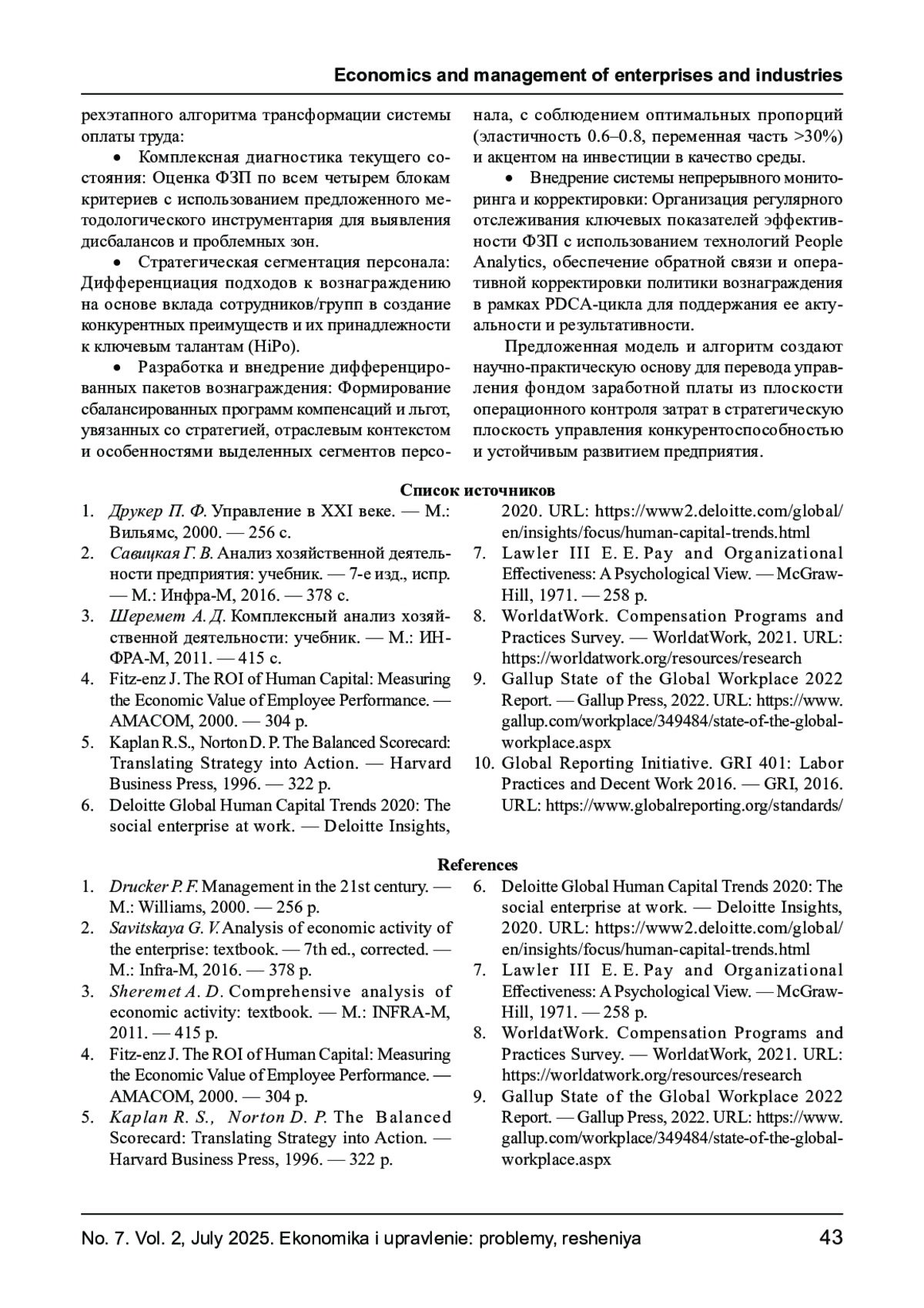 4. Fitz-enz J. The ROI of Human Capital: Measuring the Economic Value of Employee Performance. -AMACOM, 2000. - 304 p.