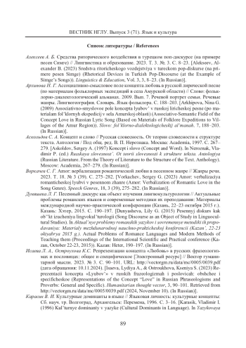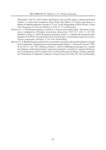 ИСАЕВА Л.А., ОСТРОУХОВА К. С. ЯЗЫКОВАЯ РЕПРЕЗЕНТАЦИЯ КОНЦЕПТА ЛЮБОВЬ В РАЗЛИЧНЫХ ПЕСЕННЫХ ТЕКСТАХ // ВЕСТНИК НИЖЕГОРОДСКОГО ГОСУДАРСТВЕННОГО ЛИНГВИСТИЧЕСКОГО УНИВЕРСИТЕТА ИМ. Н. А. ДОБРОЛЮБОВА. 2025. № 3 (71)