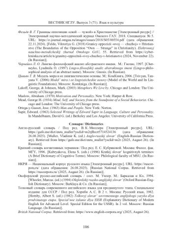 17. Цивьян Т. В. Модель мира и ее лингвистические основы. М.: КомКнига, 2006. EDN: QSKAQJ