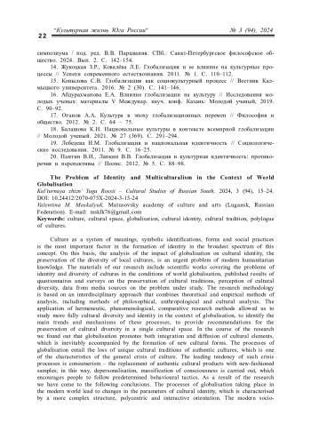 8. Лысак И.В. Проблема сохранения культурной идентичности в условиях глобализации // Гуманитарные и социально-экономические науки. 2014. № 4. С. 91-95.