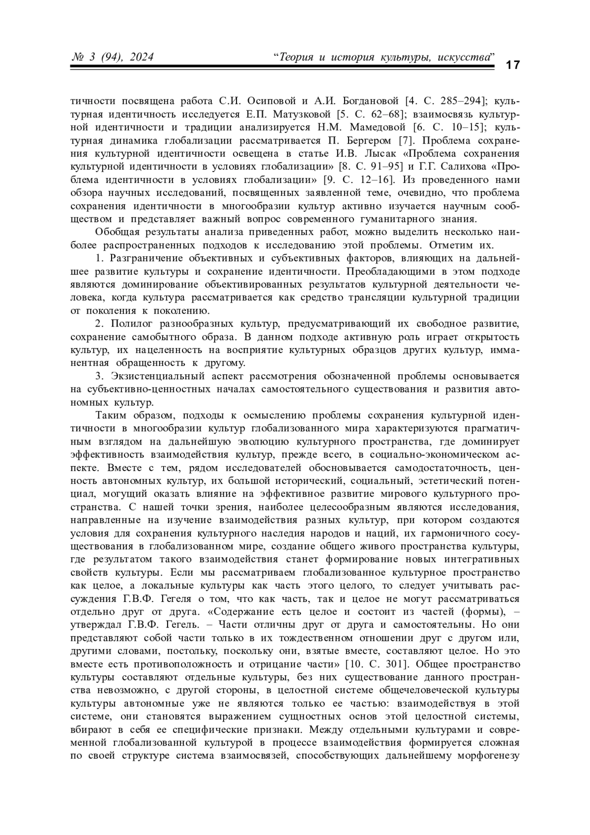3. Пакина Л. Е. Феномен культурной идентичности в контексте глобализации // Международный научно-исследовательский журнал. 2024. № 4. С. 651-655. EDN: JYJHZB