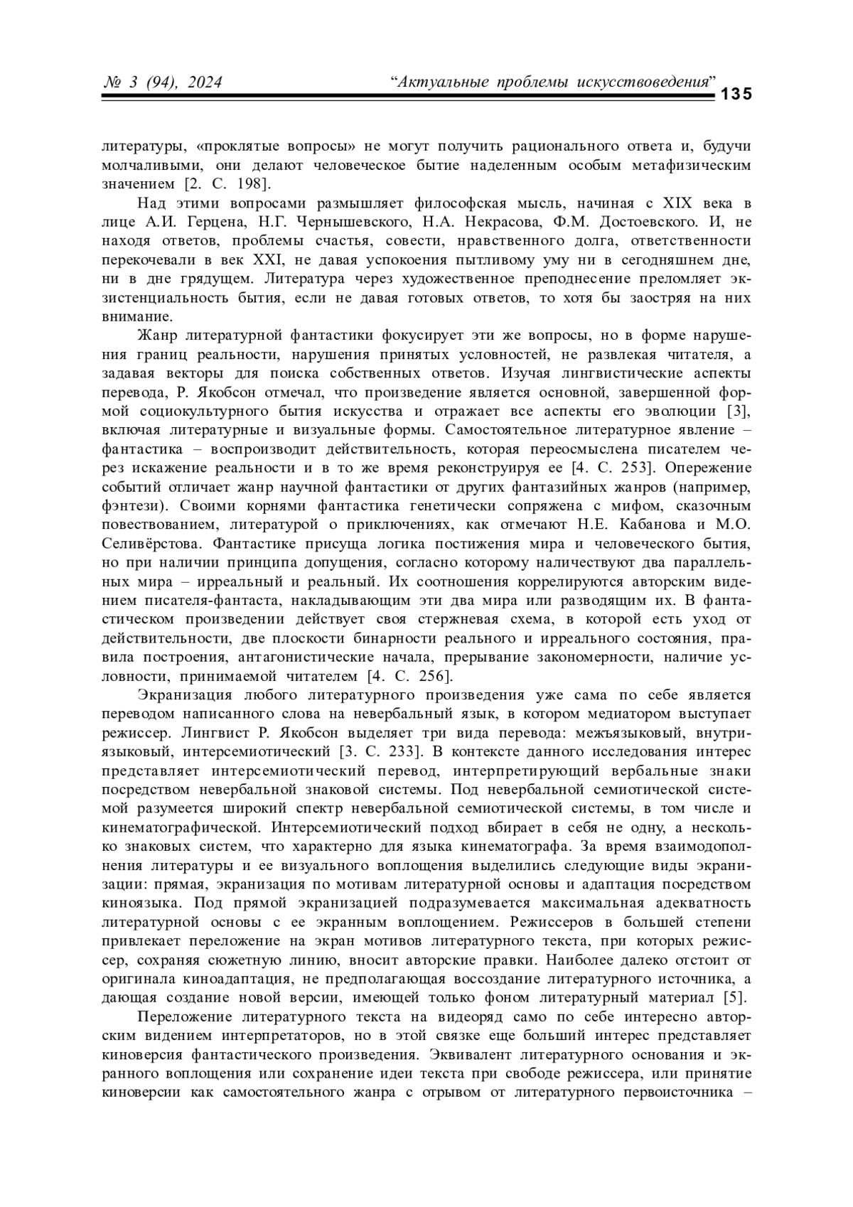 5. Лиходкина И.А. Отражение литературных образов в кинематографе или особенности интерсемиотического перевода // Филологические науки. Вопросы теории и практики. 2017. № 3(69). Т. 3. С. 128-130. EDN: YGYBRR