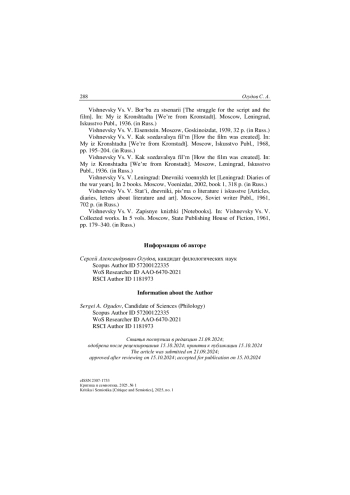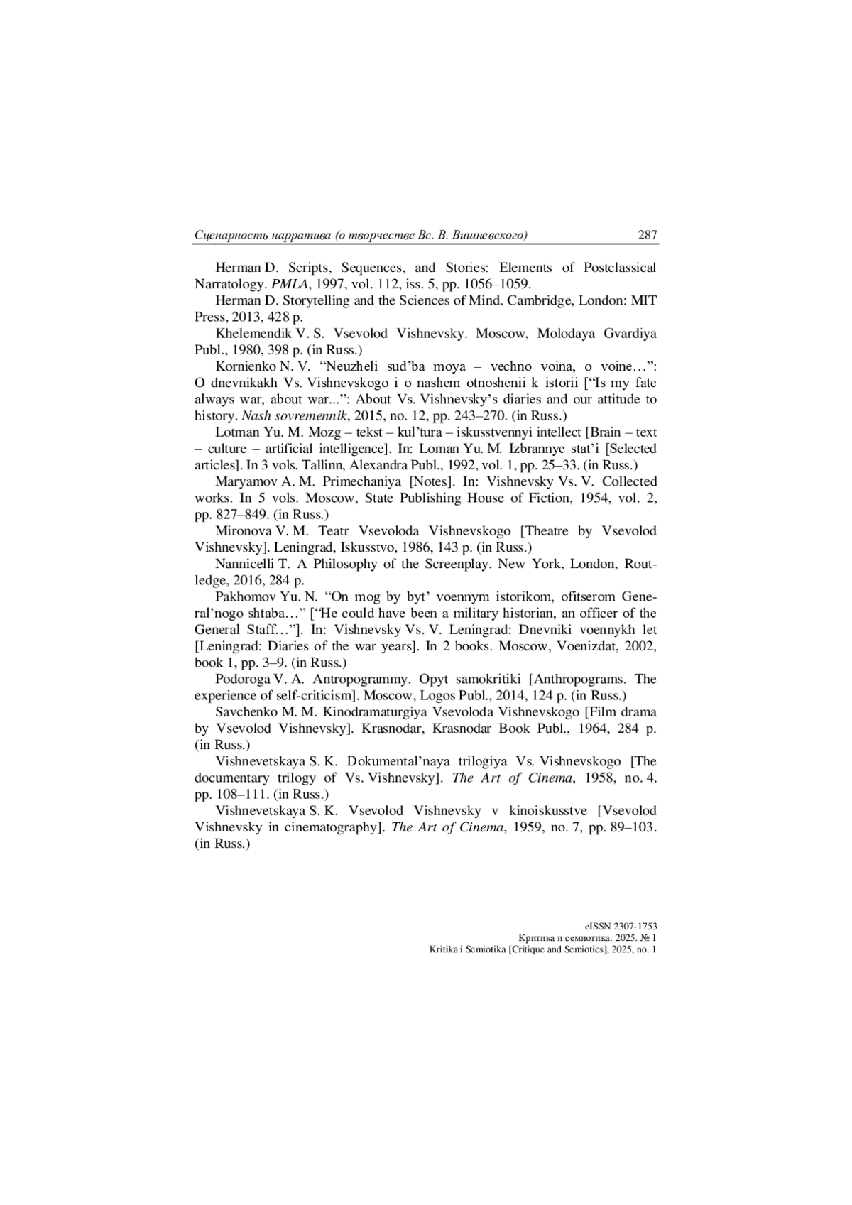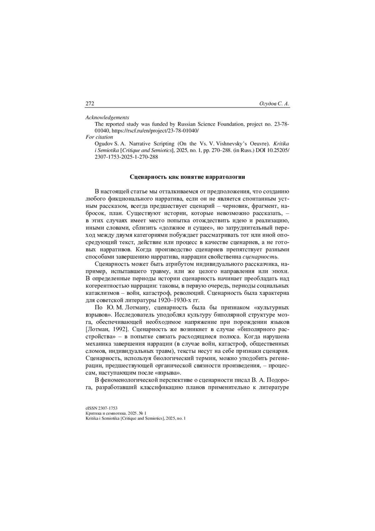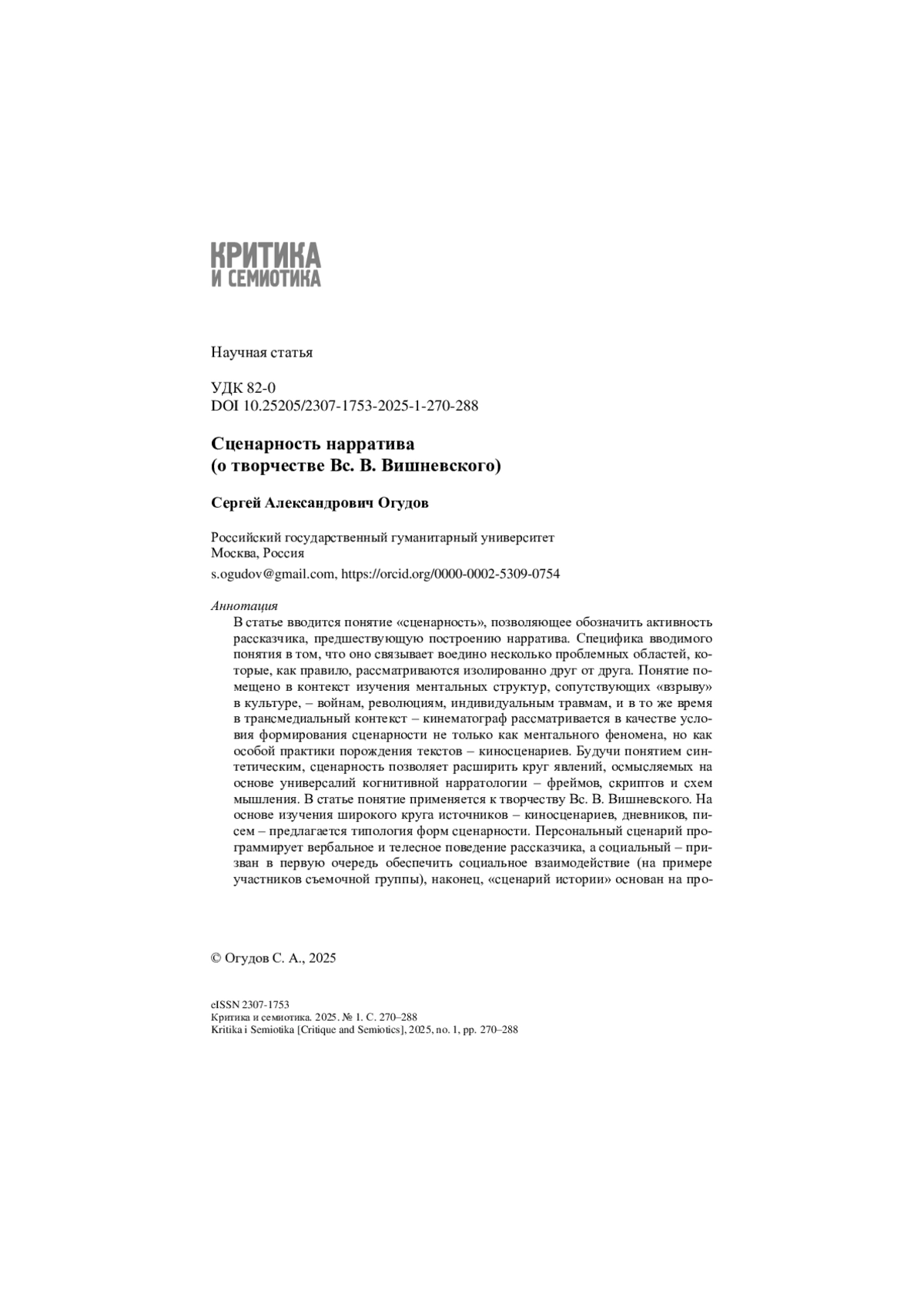 ОГУДОВ С. А. СЦЕНАРНОСТЬ НАРРАТИВА (О ТВОРЧЕСТВЕ ВС. В. ВИШНЕВСКОГО) // КРИТИКА И СЕМИОТИКА. 2025. № 1