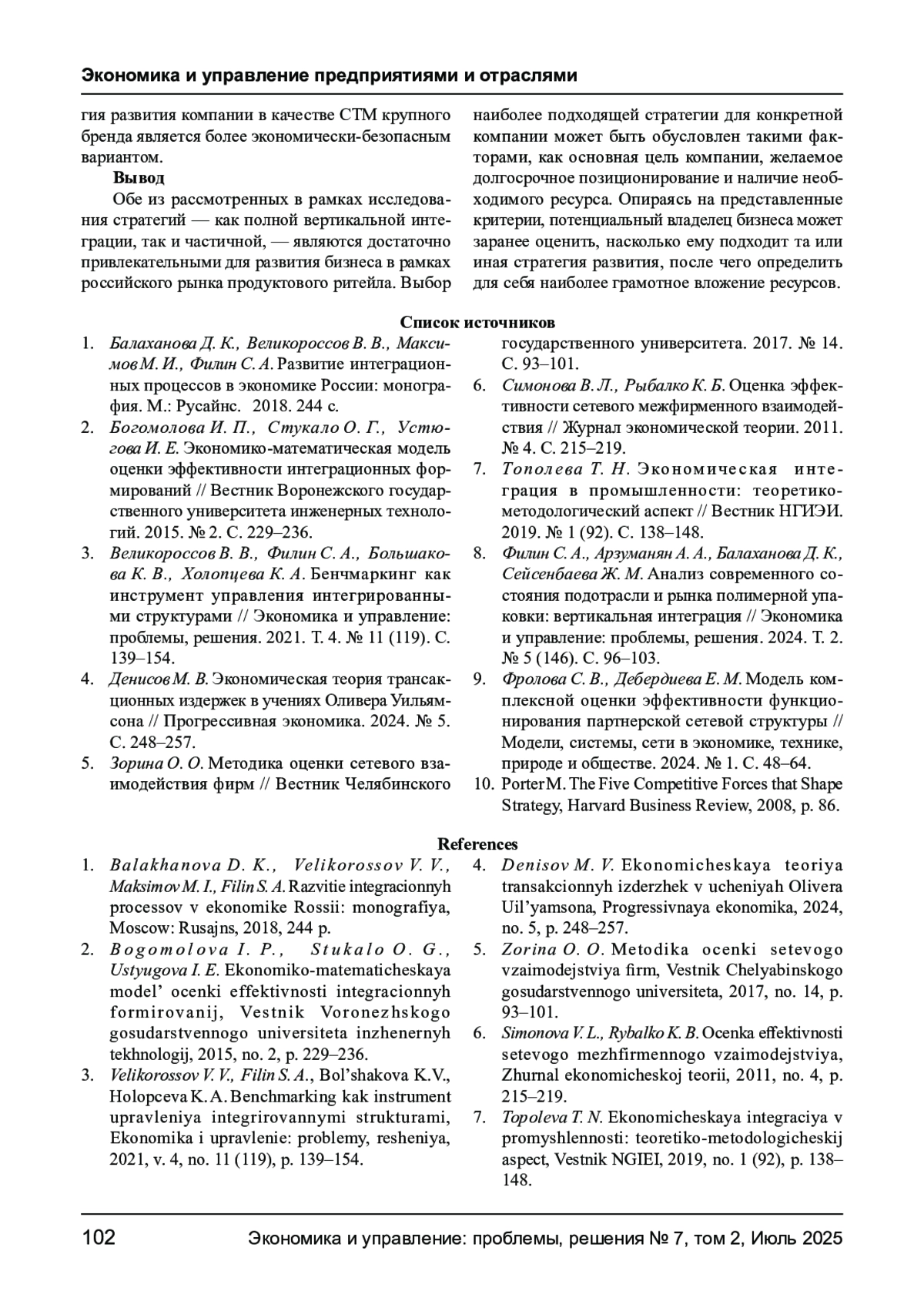 7. Тополева Т. Н. Экономическая интеграция в промышленности: теоретико-методологический аспект // Вестник НГИЭИ.2019. № 1 (92). С. 138-148. EDN: YWLXWP