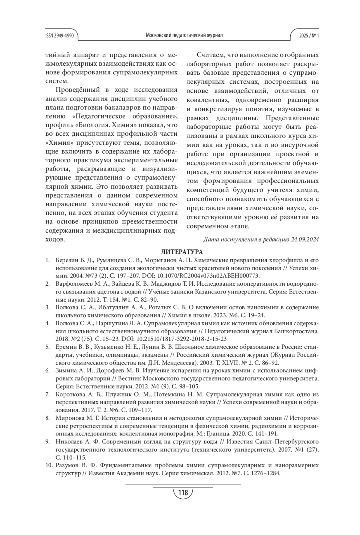 4. Волкова С. А., Паршутина Л. А. Супрамолекулярная химия как источник обновления содержания школьного естественнонаучного образования // Педагогический журнал Башкортостана. 2018. №2 (75). С. 15-23. DOI: 10.21510/1817-3292-2018-2-15-23 EDN: UWNUYX