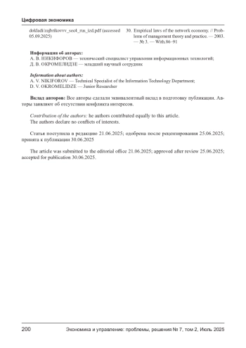 30. Эмпирические законы сетевой экономики / Вайбер Р. // Проблемы теории и практики управления. - 2003. - № 3. - С. 86-91.