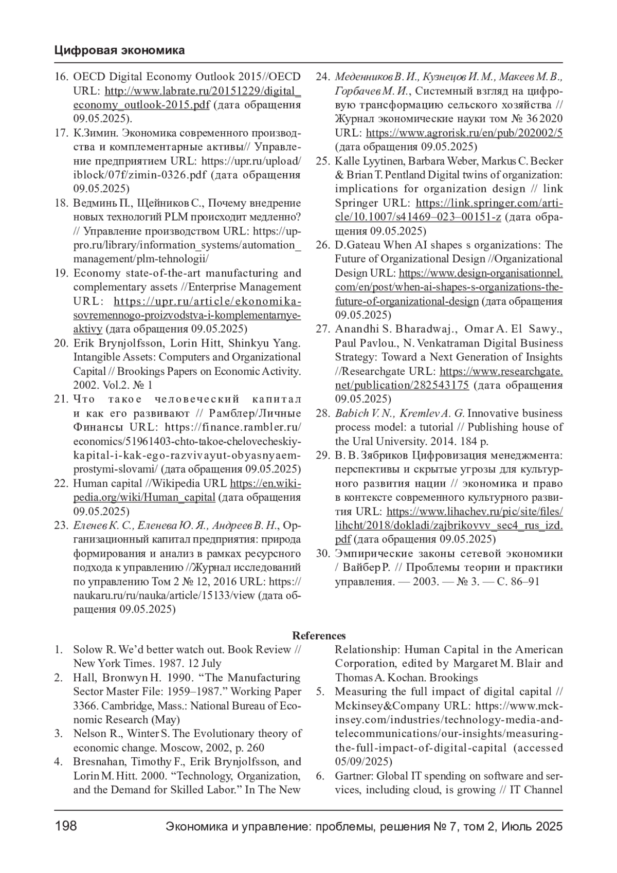19. Economy state-of-the-art manufacturing and complementary assets //Enterprise Management URL: https://upr.ru/article/ekonomika-sovremennogo-proizvodstva-i-komplementarnye- aktivy (дата обращения 09.05.2025).