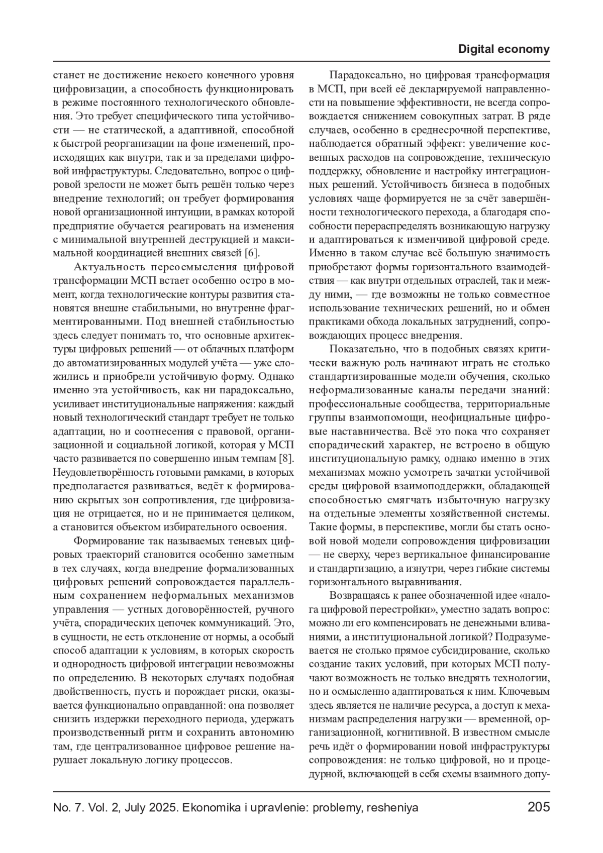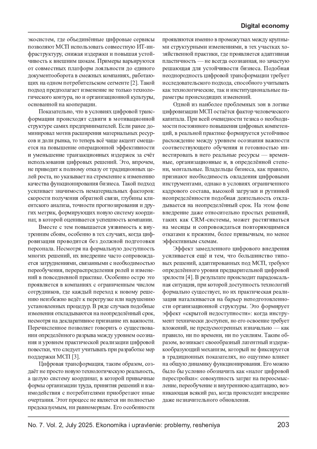 Современные процессы цифровой трансформации, затрагивающие малое и среднее предпринимательство (далее — МСП), не поддаются описанию в рамках единой универсальной модели, что делает необходимым более критическое осмысление происходящих изменений.