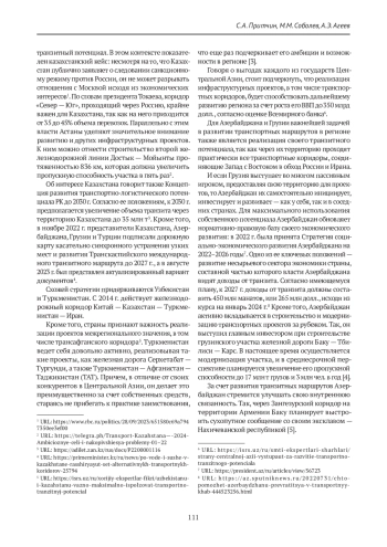 7. Федоровская И. М. Проекты развития транспортной инфраструктуры Закавказья. Россия и новые государства Евразии. 2022;4(57):123-131. https://doi.org/10.20542/2073-4786-2022-4-123-131.