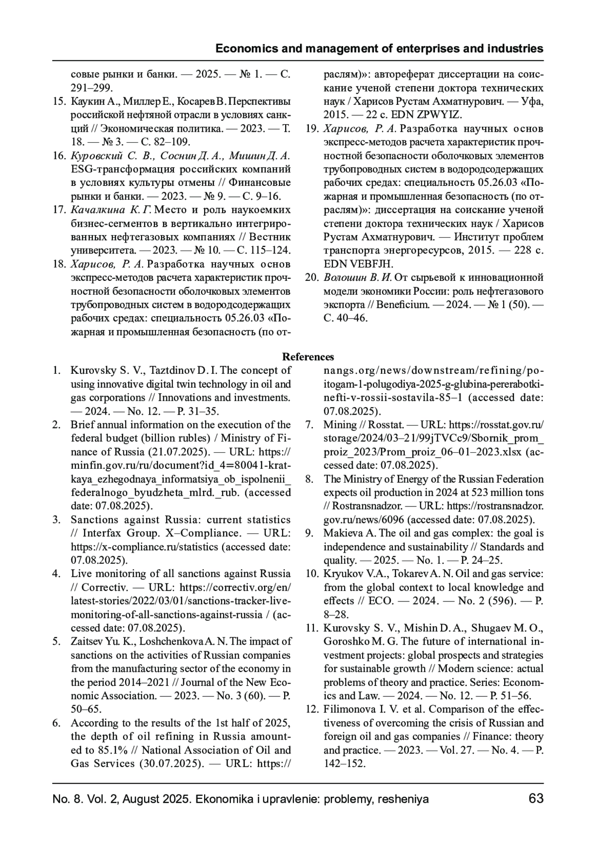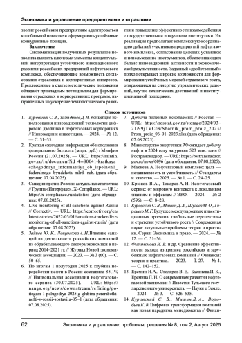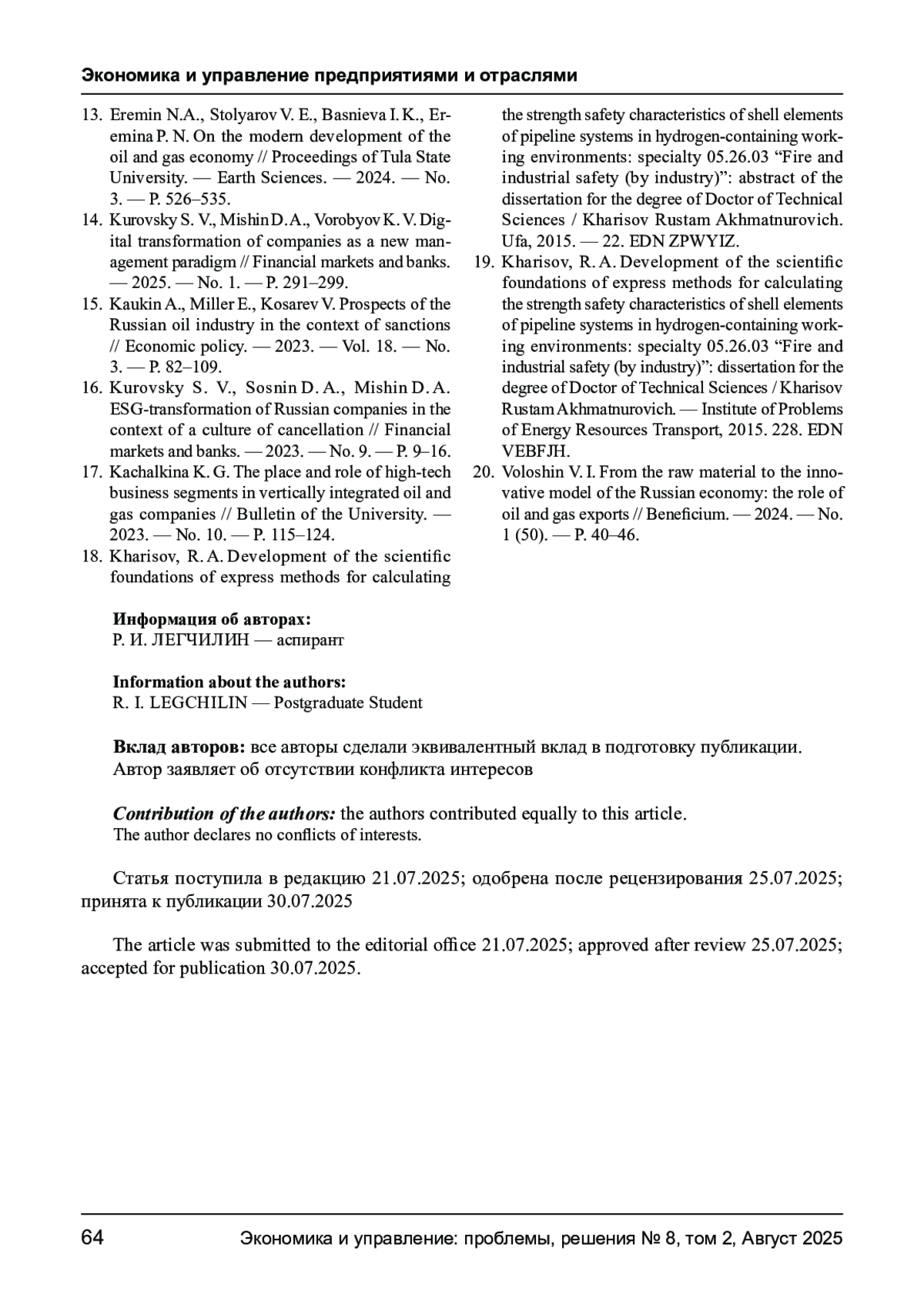 Выводы: а) внедрение предложенной модели позволяет связать приоритеты инновационного обновления с экологическими и социальными целями нефтегазового комплекса; б) для повышения эффективности применения авторской модели необходима интеграция инструментов государственной промышленной политики с внутренними стратегиями предприятий.