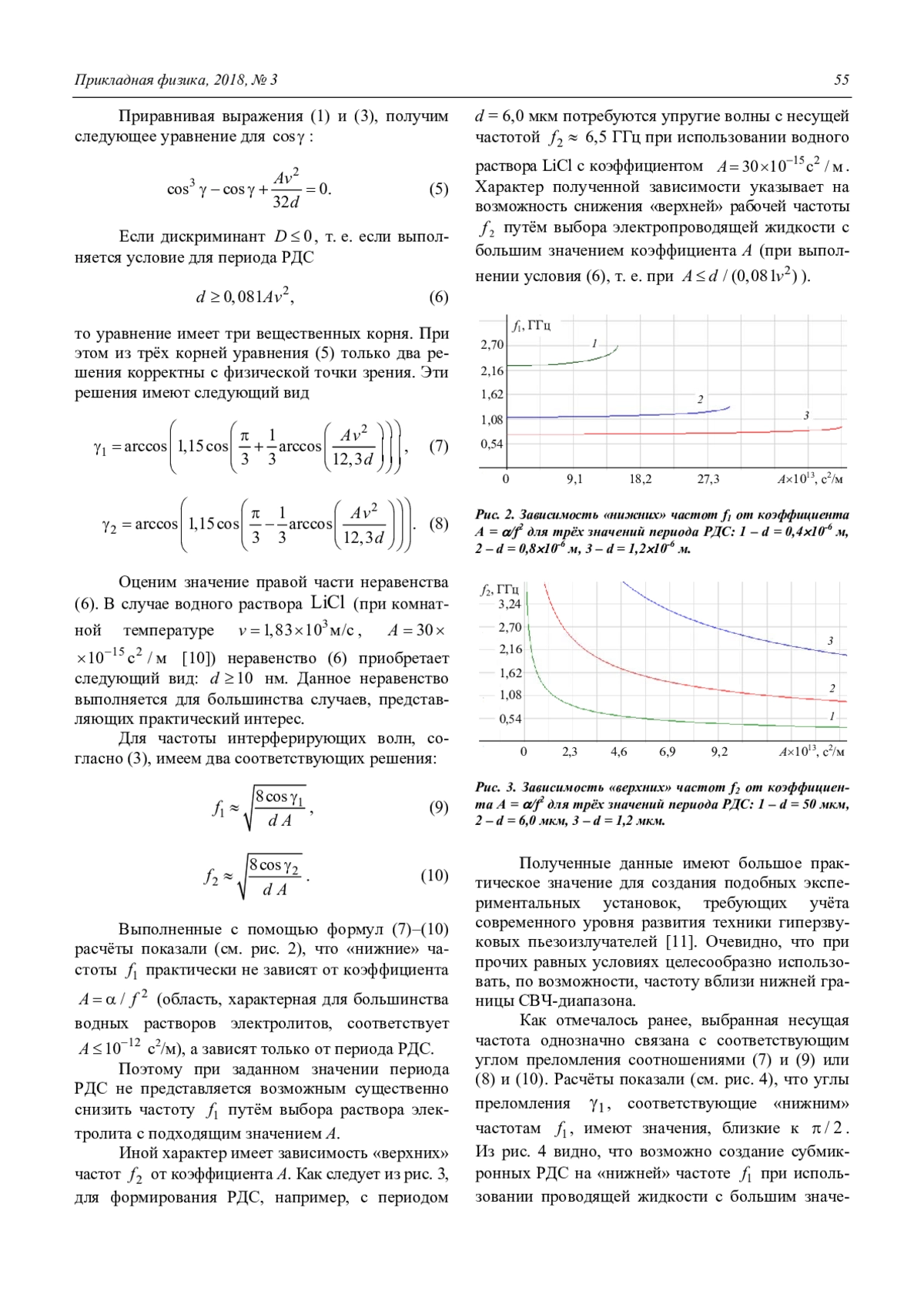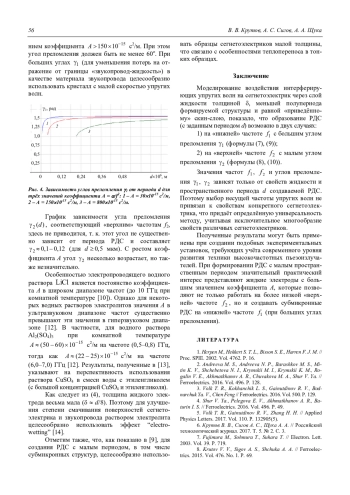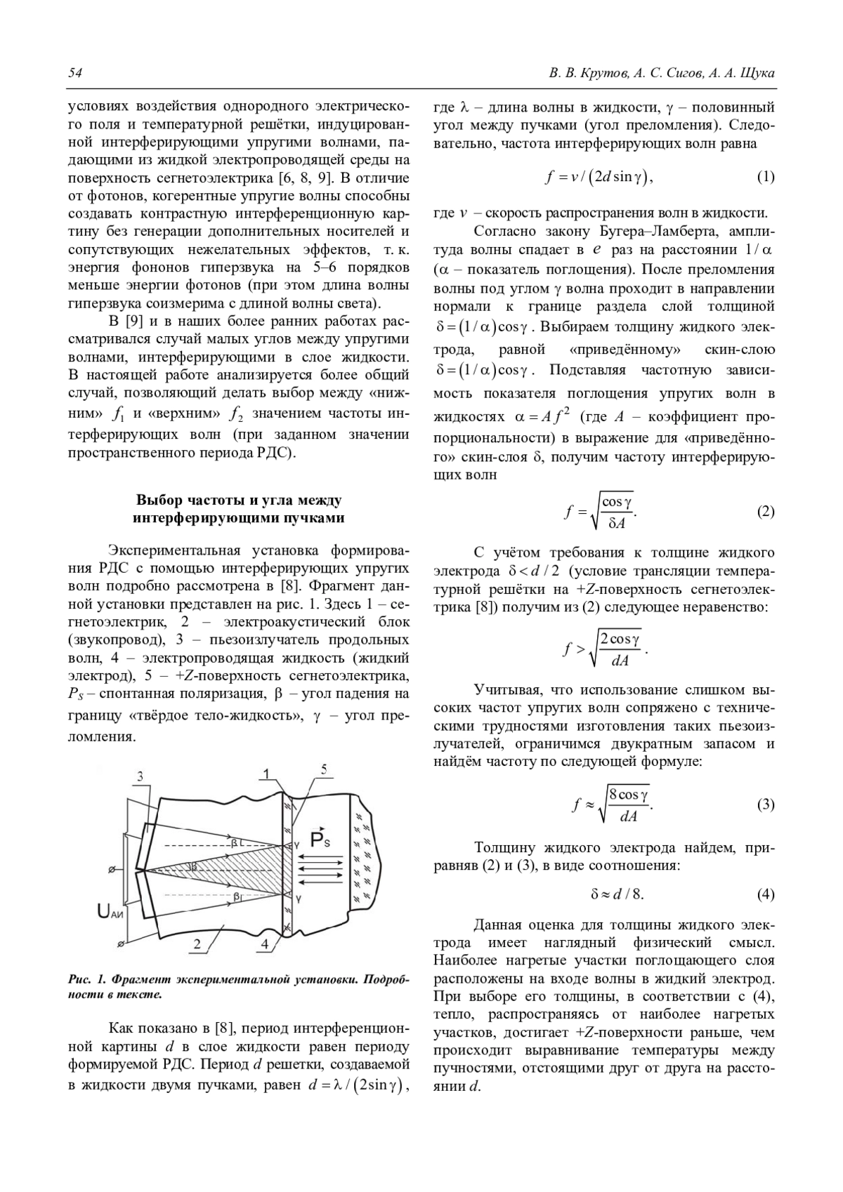 Значения частот f1, 2 f и углов преломления 1, 2 зависят только от свойств жидкости и пространственного периода d создаваемой РДС. Поэтому выбор несущей частоты упругих волн не привязан к свойствам конкретного сегнетоэлектрика, что придаёт определённую универсальность методу, учитывая исключительное многообразие свойств различных сегнетоэлектриков.