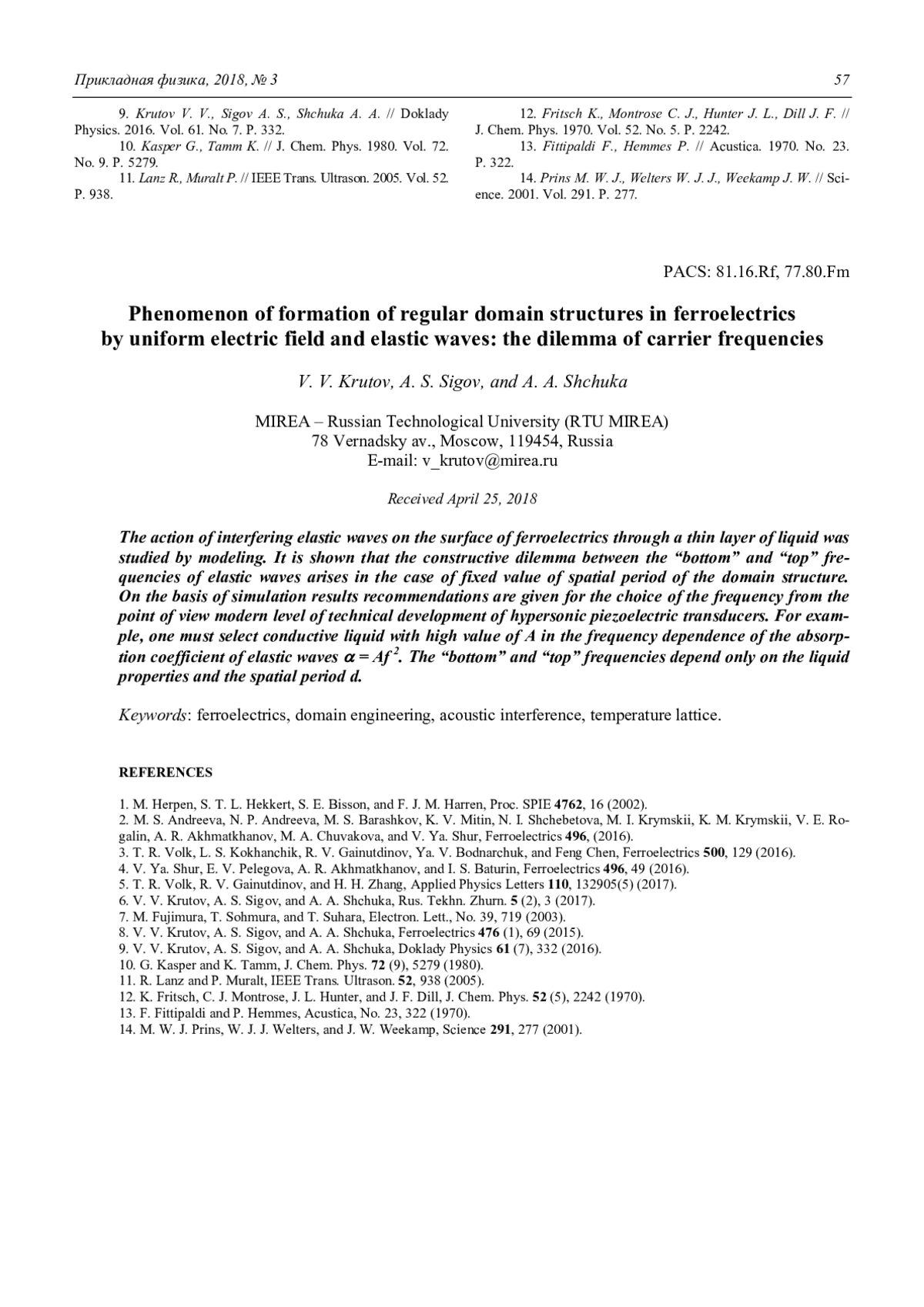 8. Krutov V. V., Sigov A. S., Shchuka A. A. // Ferroelectrics. 2015. Vol. 476. No. 1. P. 69.