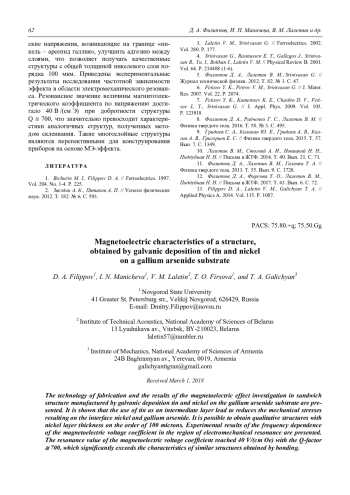 13. Filippov D. A., Laletin V. M., Galichyan T. A. // Applied Physics A. 2014. Vol. 115. P. 1087.