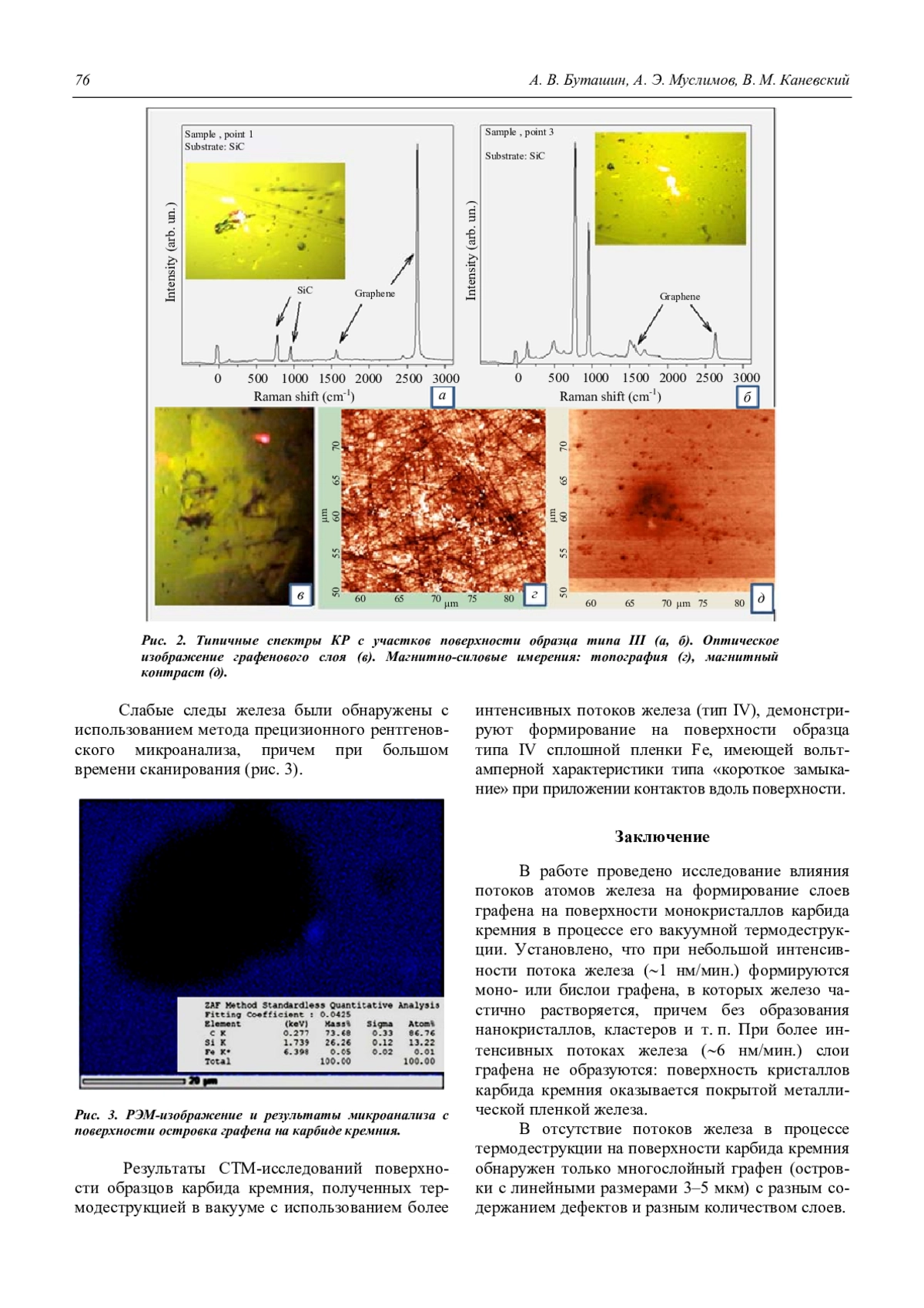 Контролируемое формирование слоев графена термодеструкцией SiC в потоке атомов желе-за Буташин А. В., Муслимов А. Э., Каневский В. М. 74