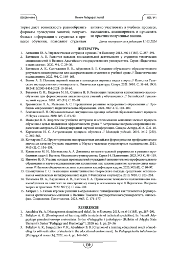 15. Хитрук Е. Б. Новые игровые решения в образовании: геймификация как технология формирования критического мышления // Вестник Томского государственного университета. Философия. Социология. Политология. 2022. №65. С. 171-177. EDN: JWBXSM