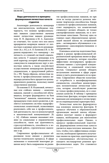 В условиях современного рынка труда, который характеризуется высокой конкуренцией и динамичностью, возникает необходимость адаптации к новым реалиям управленческой деятельности. Менеджеры играют ключевую роль в развитии организаций, поэтому их образование должно быть ориентировано не только на теоретическое обучение, но и на формирование личностных качеств и профессиональных навыков. Развитие личностных качеств и профессиональных навыков происходит не только в процессе профессиональной деятельности, но и в течение обучения в образовательных организациях высшей школы.