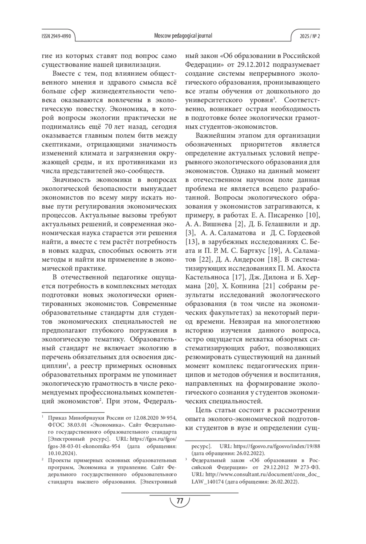 4. Гордеева Д. С. Нерешённые проблемы непрерывного профессионального образования на стыке экологии и экономики // Азимут научных исследований: педагогика и психология. 2017. Т. 6. № 3 (20). С. 63-68. EDN: ZISRHT