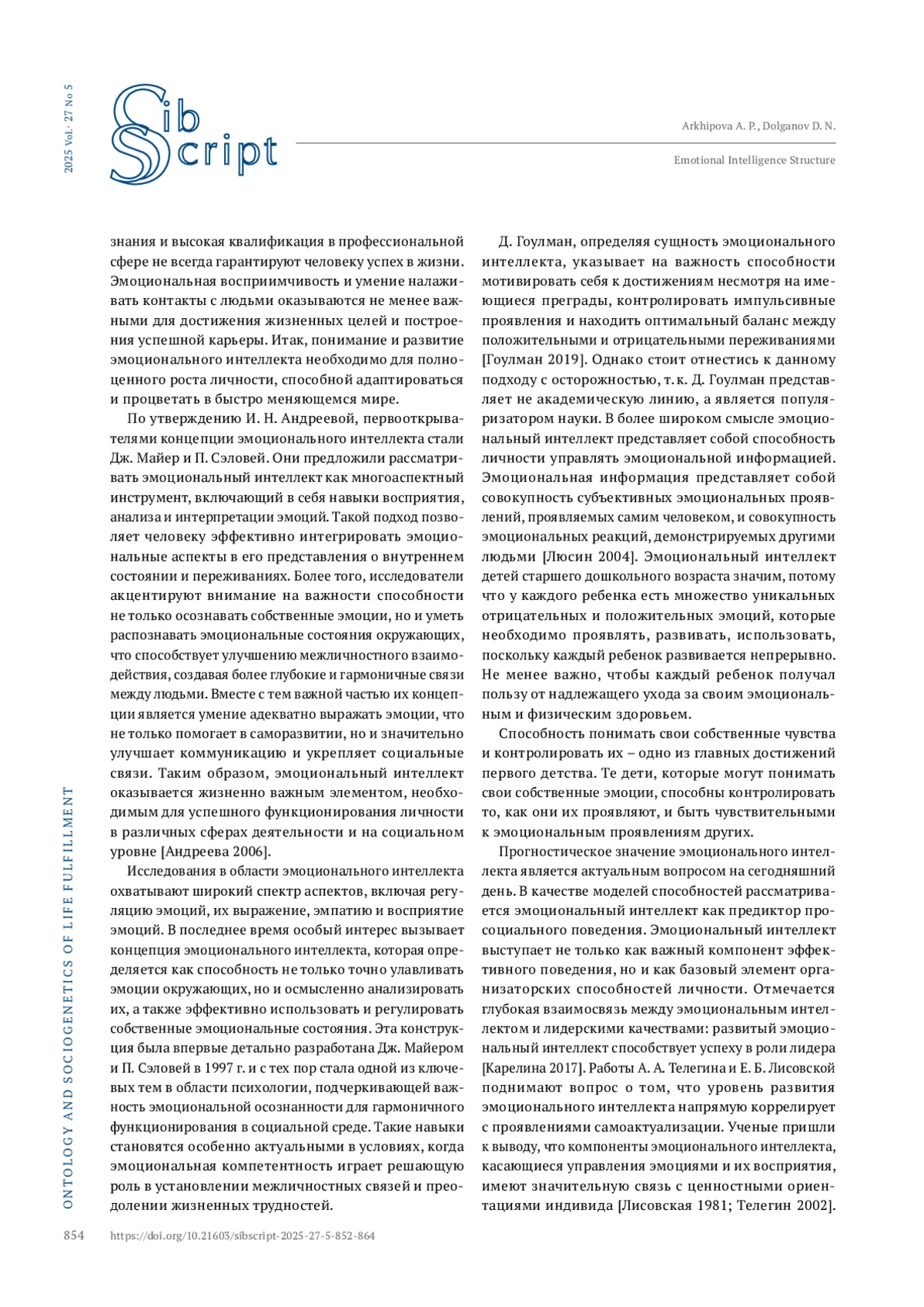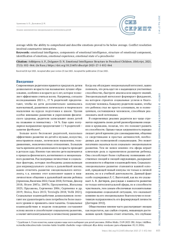 5. Архипова А. П., Васягина Н. Н. К вопросу об эмоциональном интеллекте и условиях его развития в дошкольном возрасте. Развитие человека в современном мире. 2022. № 2. С. 18-26. https://elibrary.ru/veyqsc