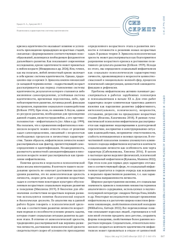 26. Mikhailova O. B., Gutvajn N. Growing infantilism in modern adolescents and young people: Symptoms and causes. RUDN Journal of Psychology and Pedagogics, 2022, (1): 39-53. https://doi.org/10.22363/2313-1683-2022-19-1-39-53.