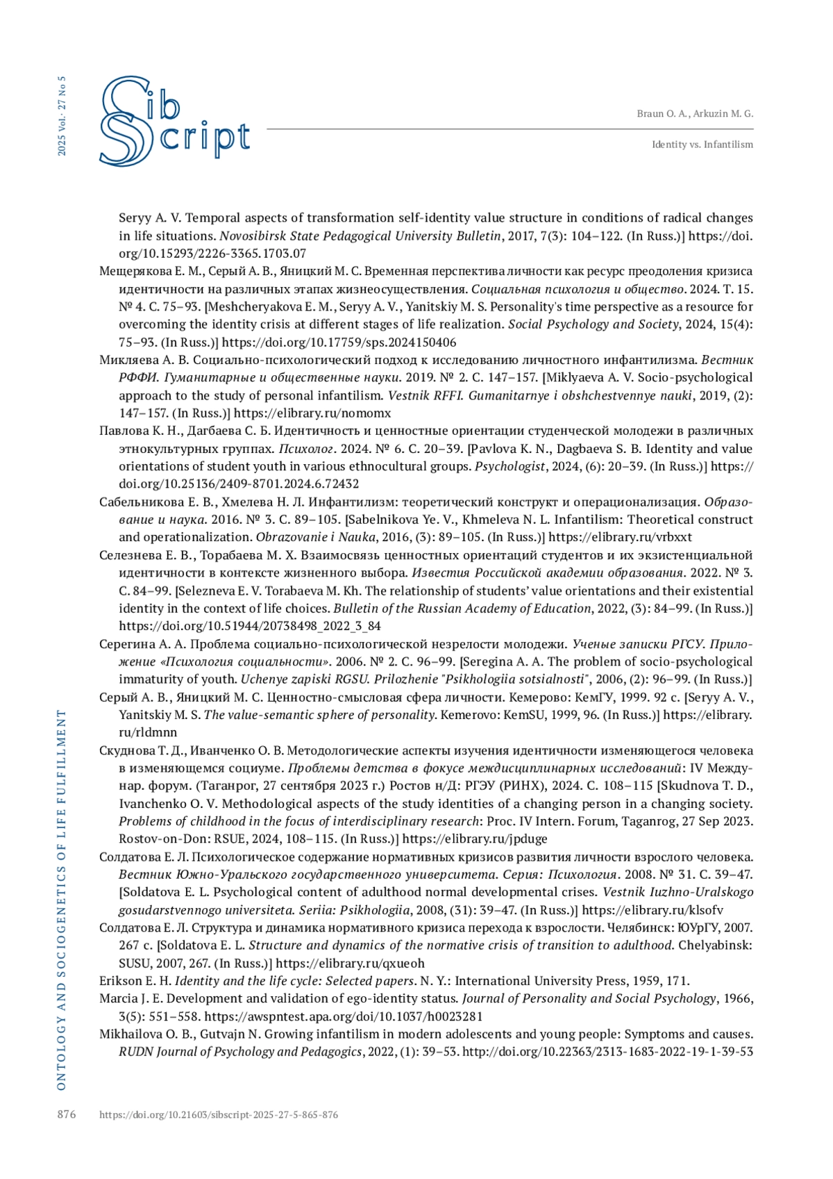 5. Браун О. А., Серый А. В., Яницкий М. С., Аркузин М. Г., Аршинова Е. В. Я-концепция личности как система идентичностей: структурно-содержательные характеристики и динамика в процессе обучения в вузе. Кемерово: КемГУ, 2022b. 96 с. https://elibrary.ru/trocrg
