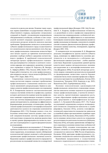 20. Скрипкина Т. П., Кусакина Е. А. Профессиограмма деятельности специалистов-кинологов МВД России как важнейший элемент качественной подготовки специалиста. Вестник Мининского университета. 2024. Т. 12. № 1. С. 9-18. https://doi.org/10.26795/2307-1281-2024-12-1-9