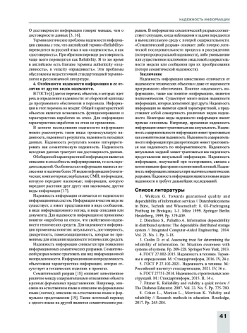 Заключение. Предлагаемый подход анализа надежности информации позволяет повысить качество и надежность информационных процессов и повысить надежность результатов информационной обработки.