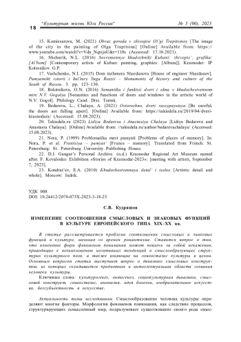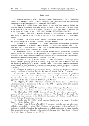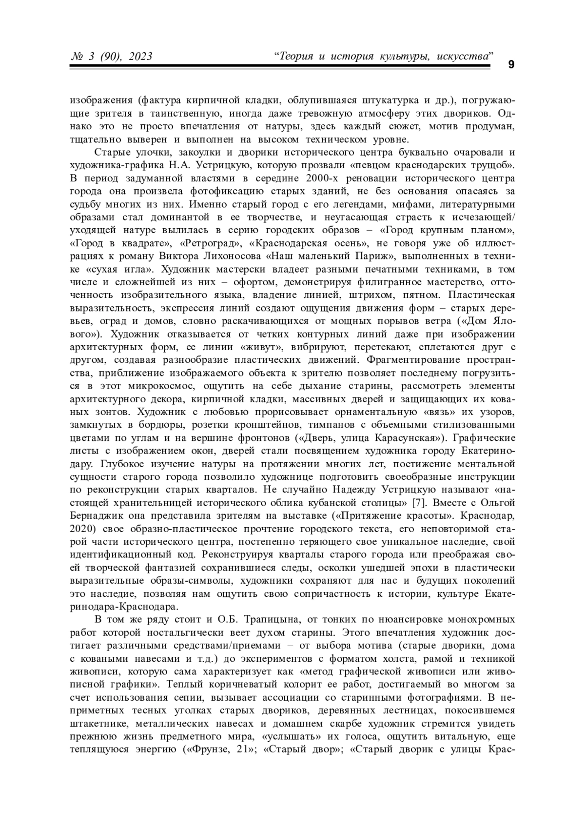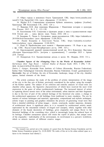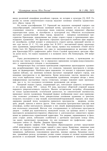 Статья: КАМЕРНЫЕ ПРОСТРАНСТВА "УХОДЯЩЕГО ГОРОДА" В ПРОИЗВЕДЕНИЯХ КРАСНОДАРСКИХ ХУДОЖНИКОВ (2023)