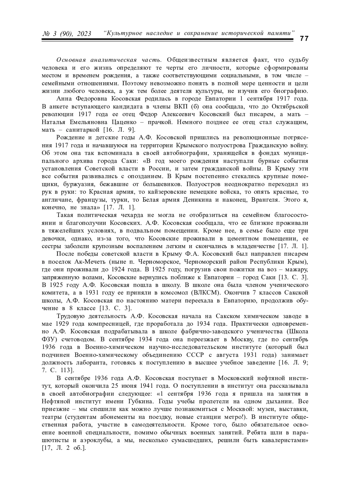 17. АО АГС (Архивный отдел (муниципальный архив) Администрации города Саки Республики Крым). Ф. 7. Оп. 1. Д. 12. Статьи Косовской А.Ф. Об истории города Саки в газете Красное знамя. Оттиски. Краткая биография Косовской Анны Федоровны.