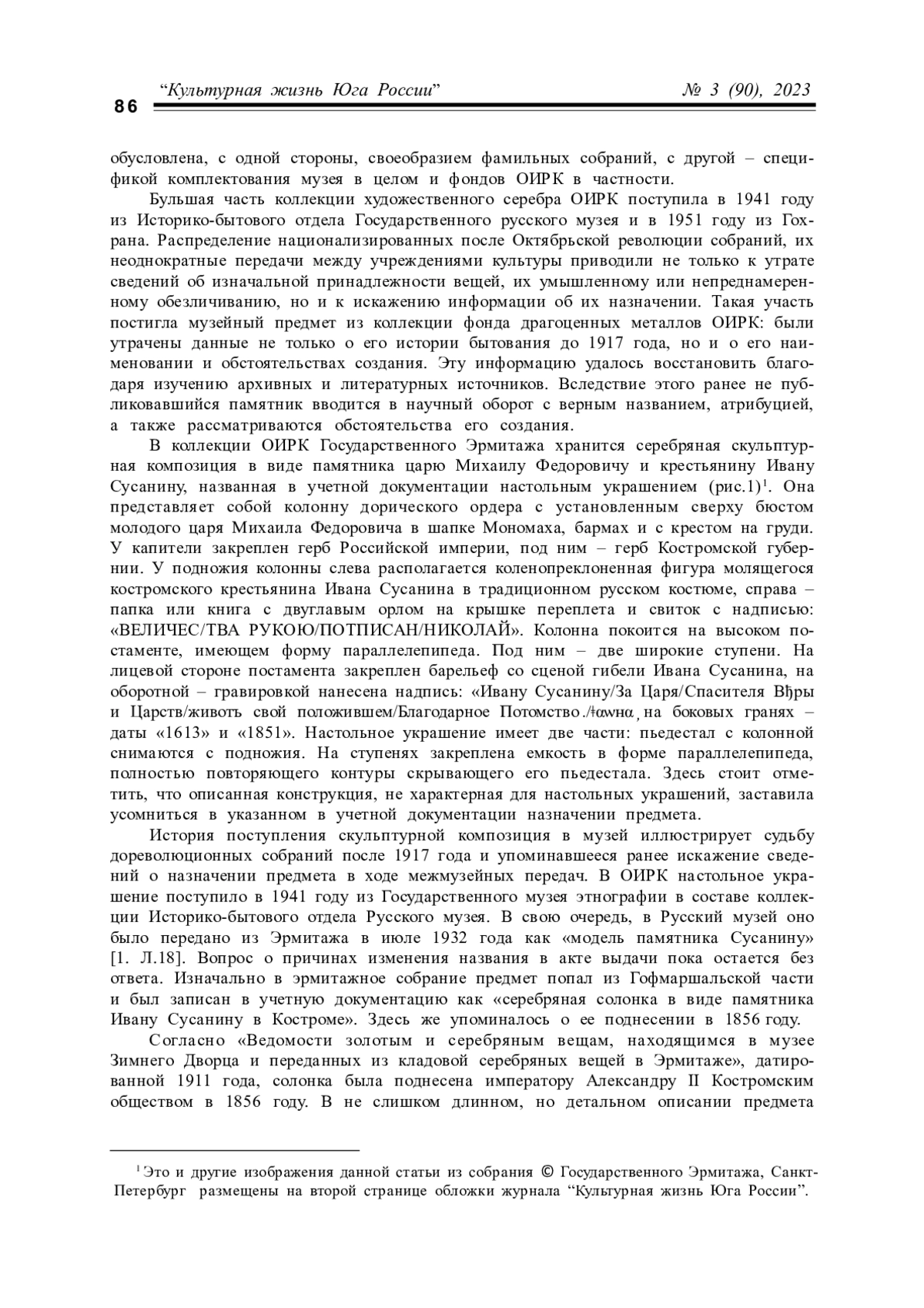 4. Памятник царю Михаилу Феодоровичу и поселянину Ивану Сусанину // Русский художественный листок, / издаваемый, с высочайшего соизволения, Василием Тиммом. 1851. № 14. С. 1.