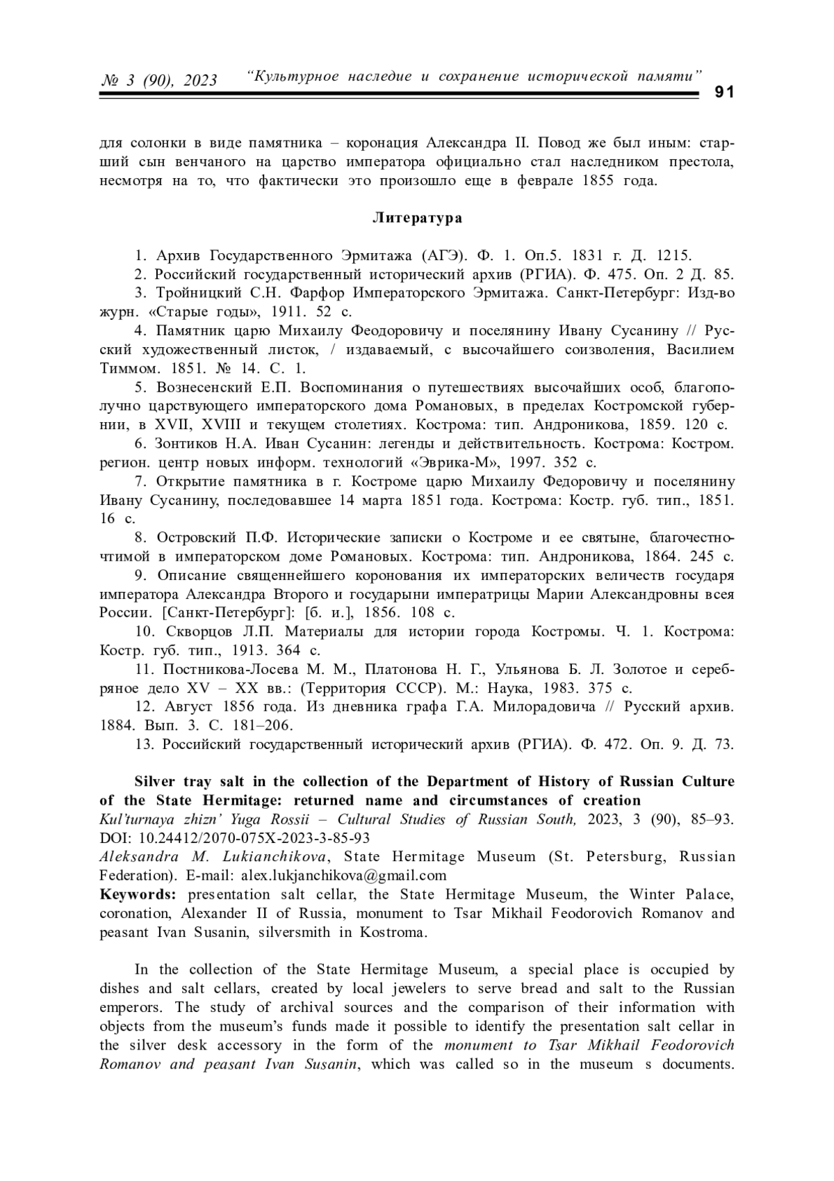5. Вознесенский Е.П. Воспоминания о путешествиях высочайших особ, благополучно царствующего императорского дома Романовых, в пределах Костромской губернии, в XVII, XVIII и текущем столетиях. Кострома: тип. Андроникова, 1859. 120 с.