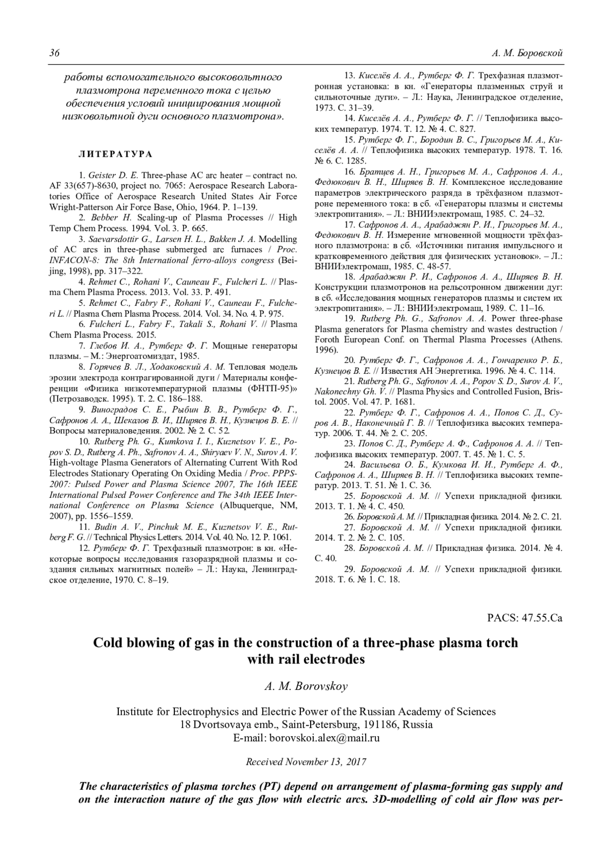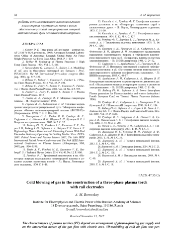 A. M. Borovskoy Cold blowing of gas in the construction of a three-phase plasma torch with rail electrodes 30